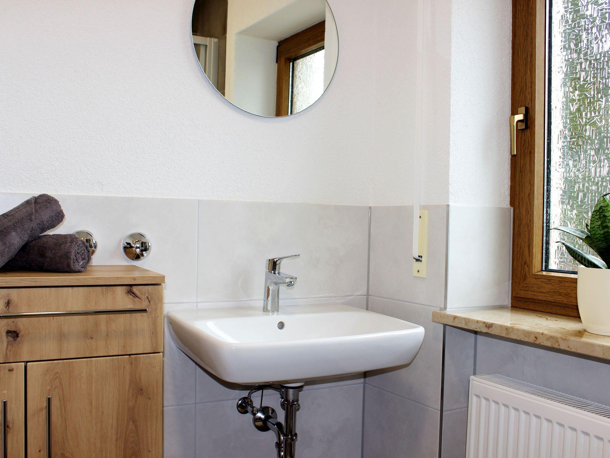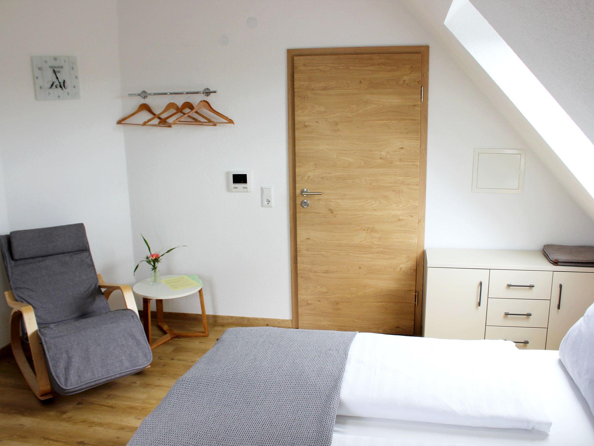Unser Appartement mit 26 m² Wohnfläche im ersten Stock bietet Platz für bis zu 2 Personen. Das Wohn- / Schlafzimmer ist mit einem Doppelbett (200cm x 160cm), einem Satelliten-TV, Relax-Liege und einer Essecke ausgestattet. Die Wohnung besitzt zudem eine gut ausgestattete Küche mit Kühlschrank, Gefrierschrank, Herd, Backofen, Mikrowelle, sowie Toaster, Wasserkocher und Kaffeemaschine. Zudem ist ein Zugang zum Balkon incl. Sonnenschirm und Sitzgelegenheit mit Tisch vorhanden. Das Badezimmer mit Dusche, Spiegel und Föhn runden das Gesamtbild ab. Auch im Garten befindet sich eine Sitzgelegenheit, die zum Relaxen einlädt. Bitte beachten Sie, dass keine Haustiere erlaubt sind. Im Übernachtungspreis sind Endreinigung, Nebenkosten, PKW-Stellplatz, die gesetzlich gültige Mehrwertsteuer, Bettwäsche, Hand-, Spül- und Geschirrtücher sowie Toilettenpapier enthalten. Küchentücher und Spülmittel liegen bereit.