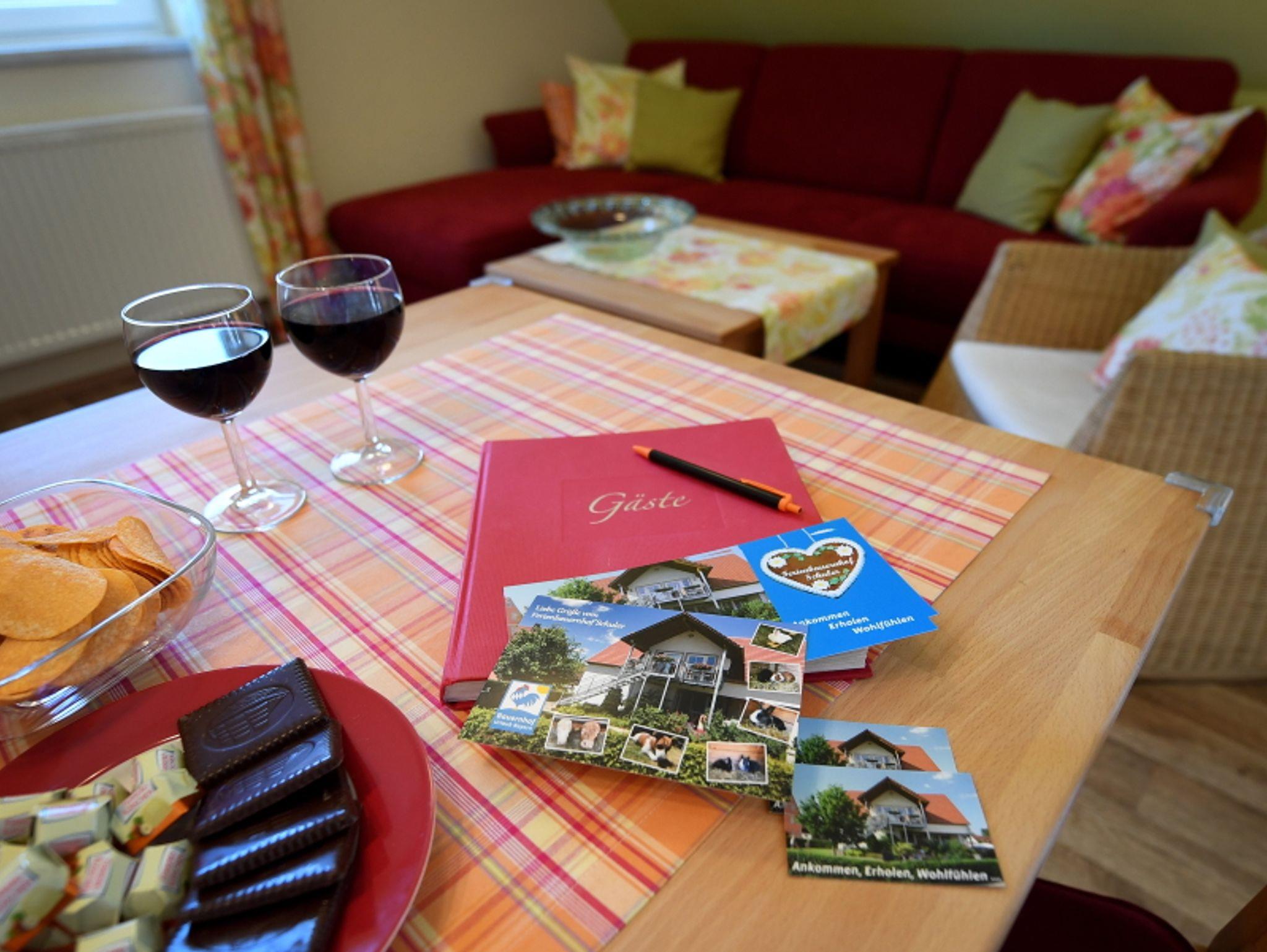 Sie verfügt über eine voll eingerichtete Einbauküche mit Essplatz (Spülmaschine, Kühlschrank mit Gefrierfach, E-Herd mit Glaskeramikkochfeld, Mikrowelle und diverse Kleingeräte), ein Wohnzimmer mit TV, W-LAN und Telefonanschluss, Schlafzimmer mit Babybett, separates Kinderzimmer, Bad mit Dusche und WC.