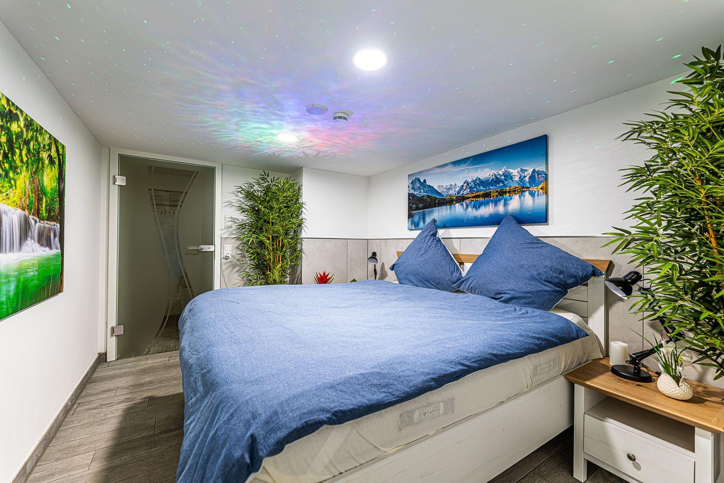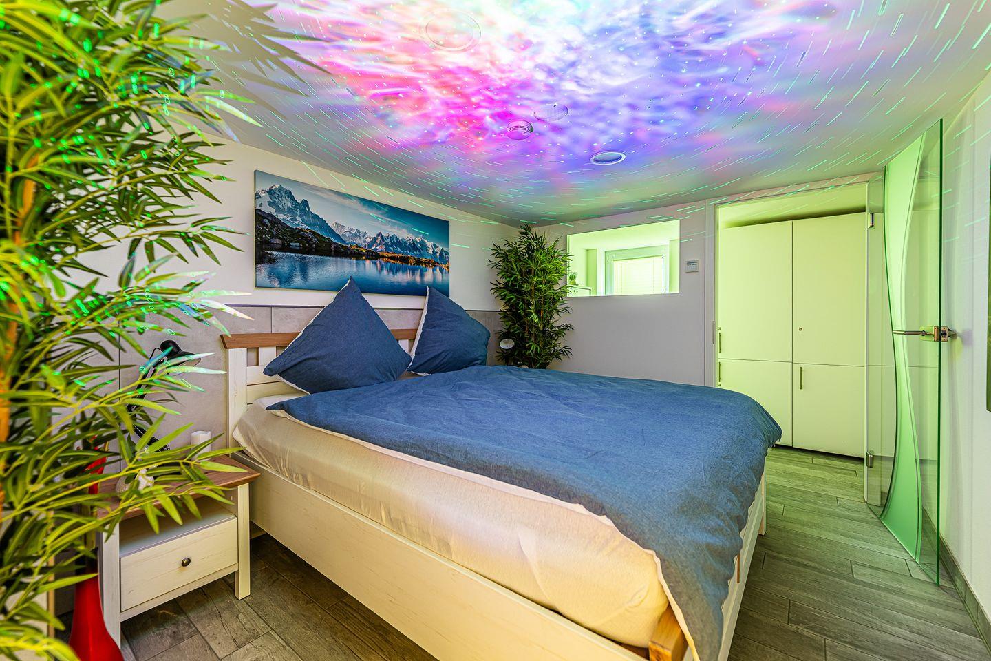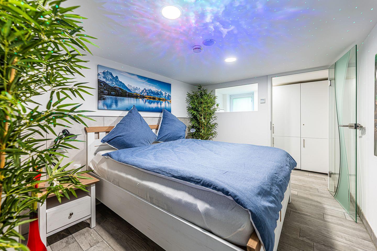 Die moderne, im Jahr 2023 vollständig renovierte Unterkunft ist hochwertig ausgestattet und besticht durch ein elegantes, luxuriöses Ambiente. Sie verfügt über einen großzügigen Saunabereich zur alleinigen Nutzung samt angeschlossenem Ruheraum – ein ideales Refugium für individuelle Entspannung. Die Fußbodenheizung sorgt für ein angenehmes Raumklima zu jeder Jahreszeit. Große Ganzkörperspiegel und praktische Fliegengitter an allen Fenstern sowie ein umfassender Sichtschutz gewährleisten Privatsphäre und Komfort.