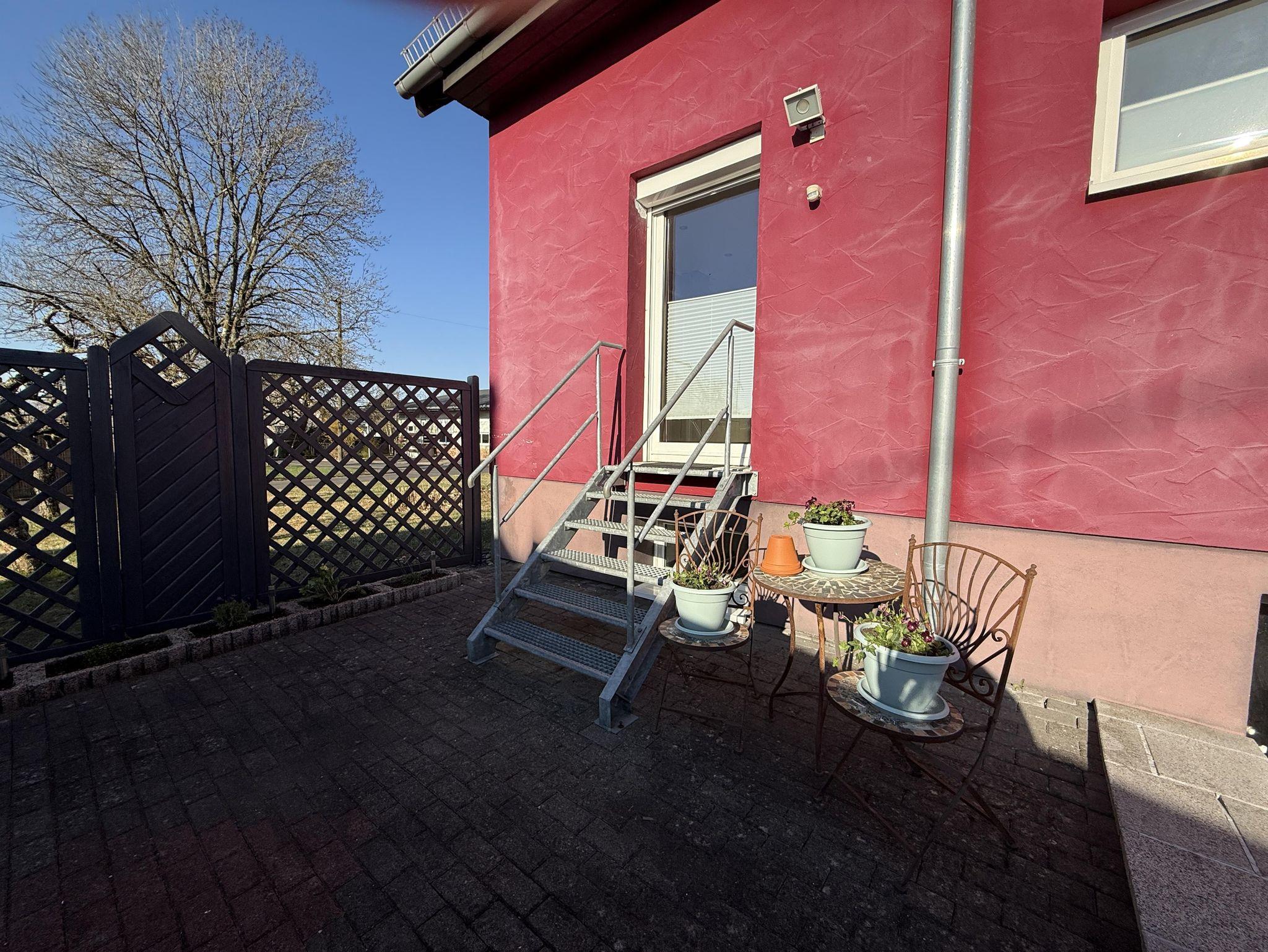 Der Eingangsbereich ist mit einer Treppe zu erreichen.