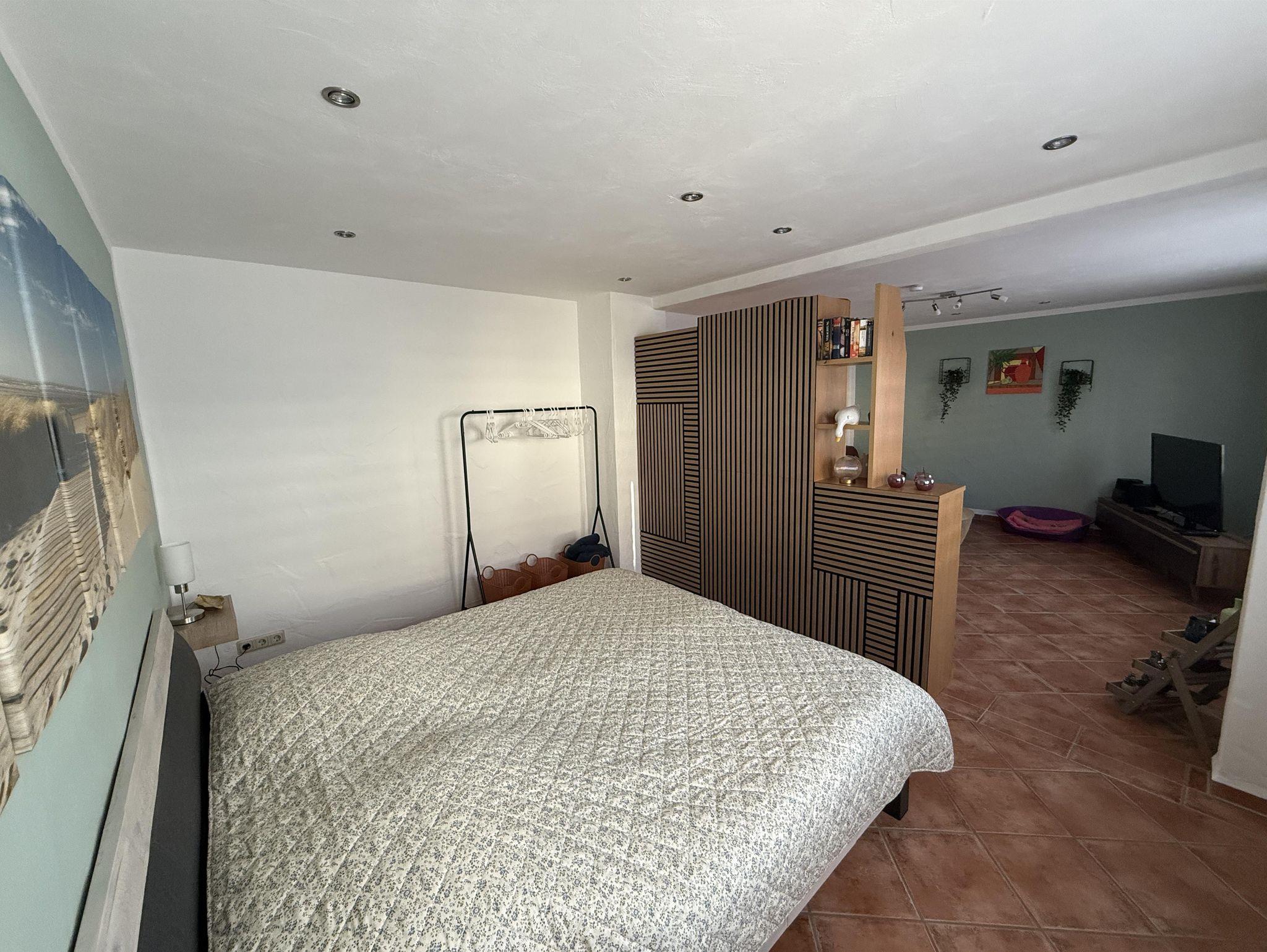 Der gemütliche Wohnraum ist harmonisch mit einem verbundenen Schlafzimmer gestaltet, sodass Sie sich sofort wie zu Hause fühlen können.