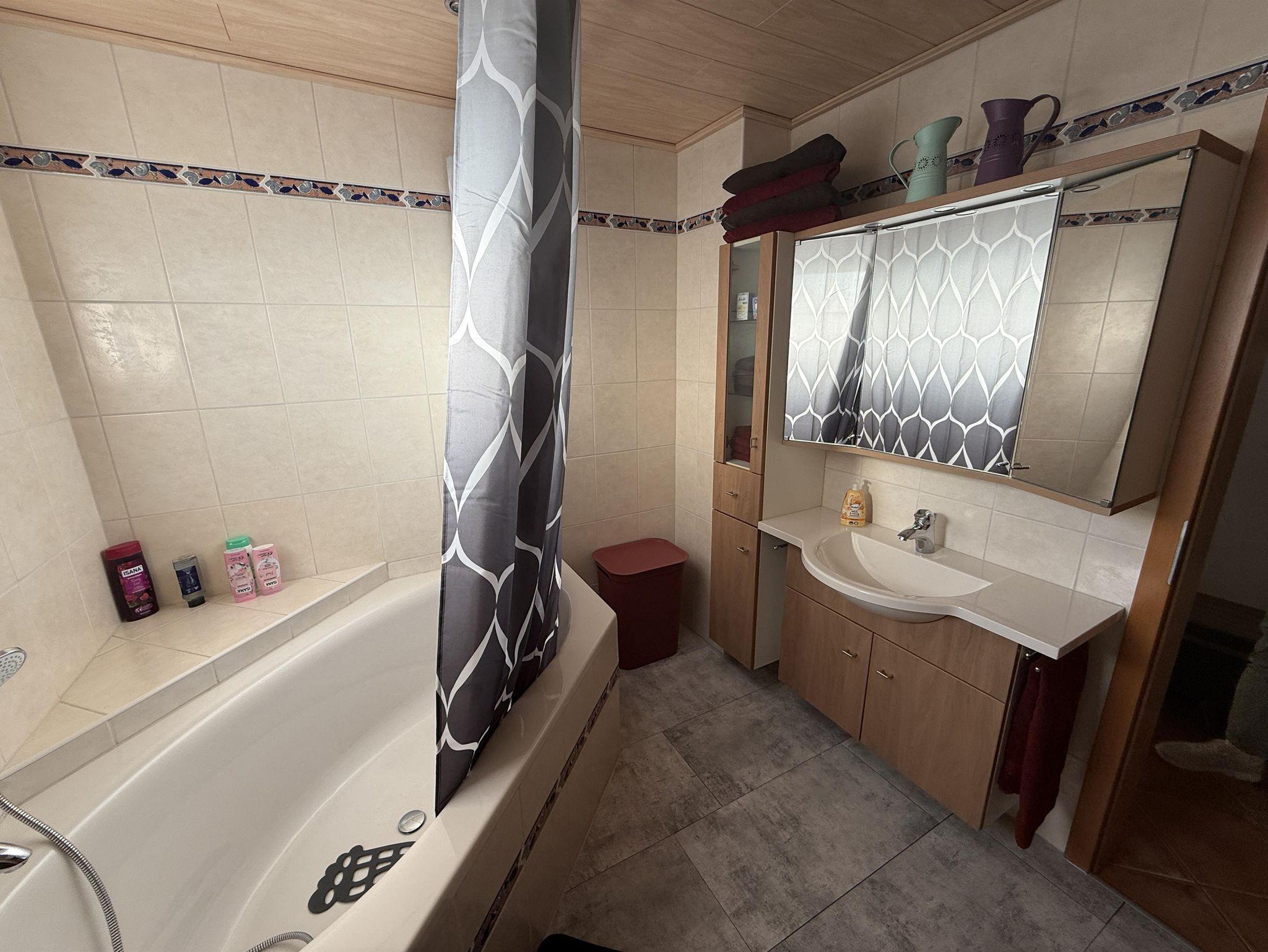 ist mit einer komfortablen Badewanne ausgestattet, die auch eine Dusche beinhaltet – perfekt für entspannende Momente nach einem erlebnisreichen Tag.