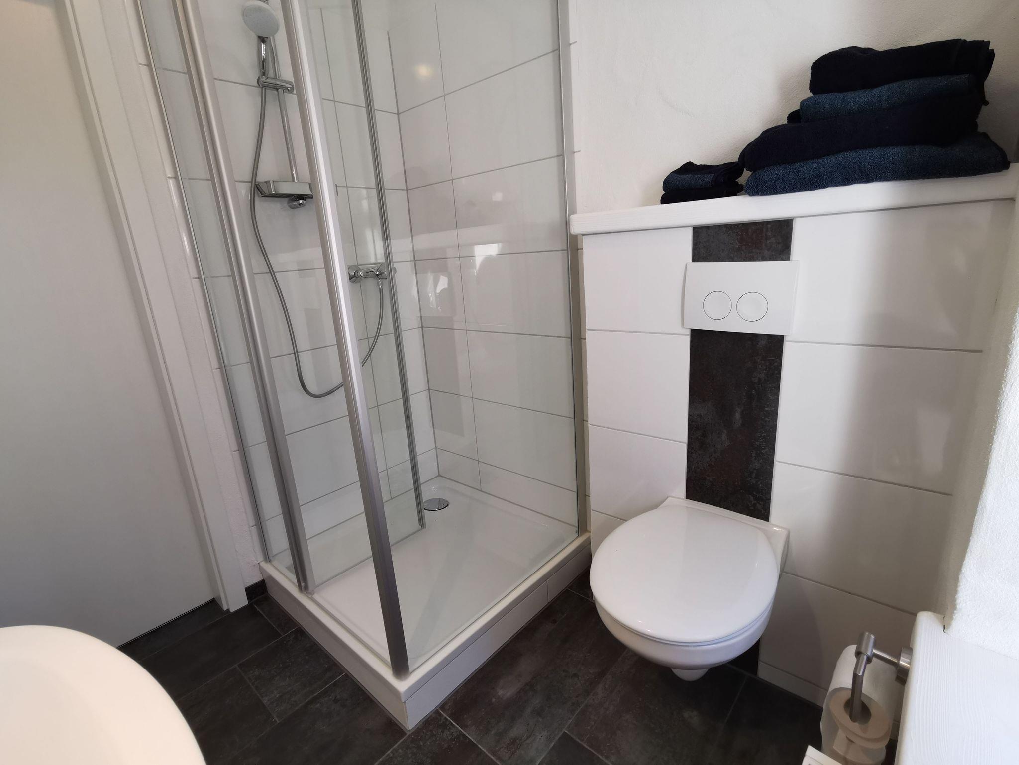 Alle Doppelzimmer haben ein eigenes Badezimmer mit Dusche, Waschbecken und Toilette. Folgende Ausstattung ist in jedem Gästezimmer vorhanden: