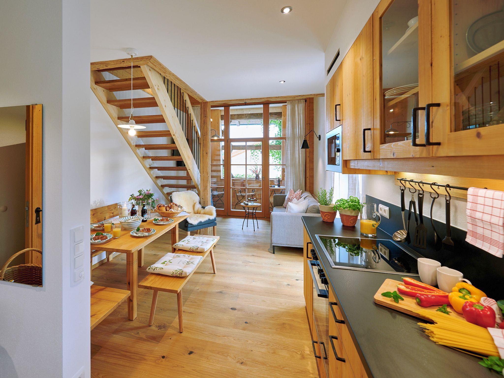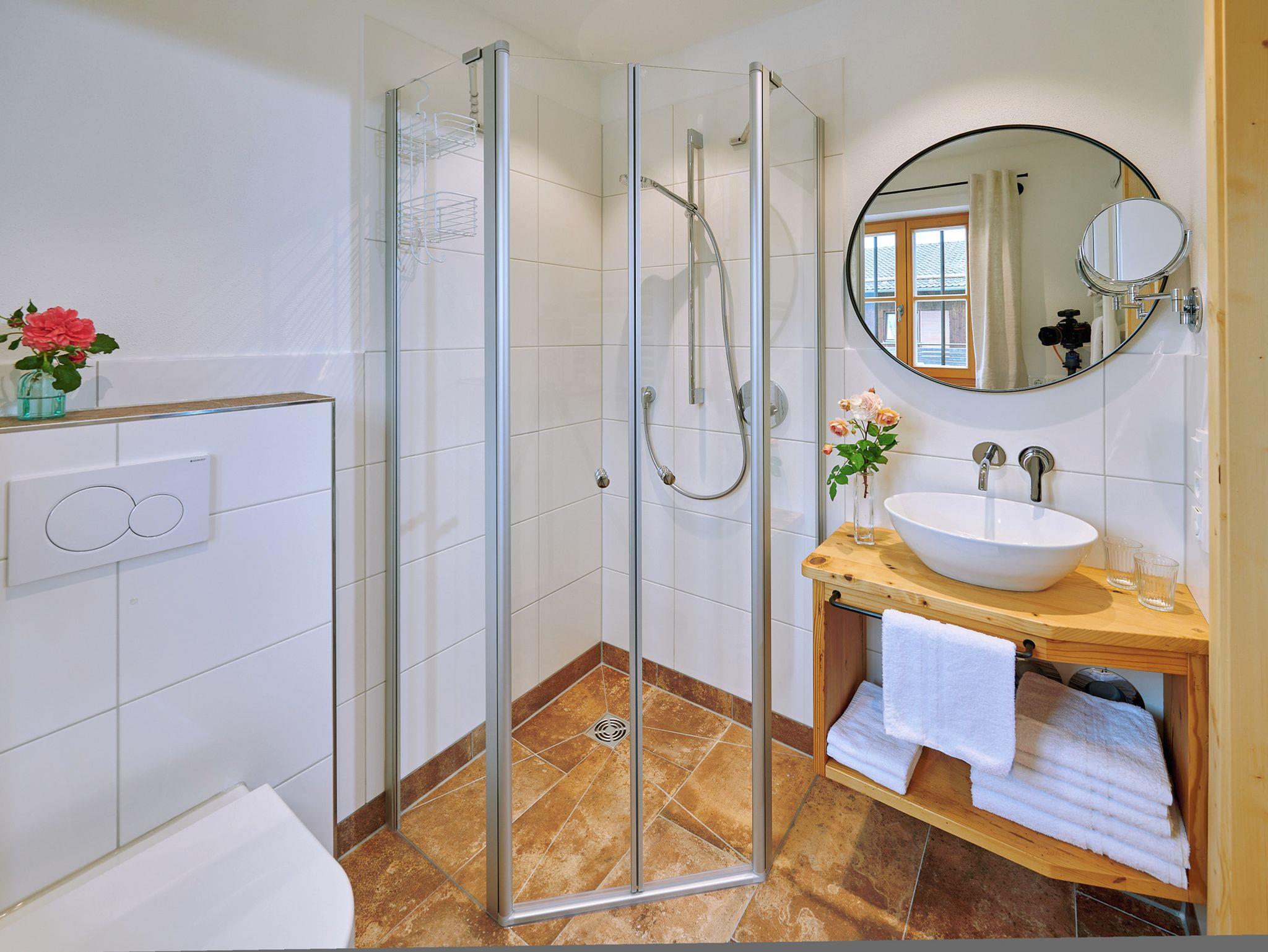 Über zwei Etagen erstreckt sich die 63 m² große luxuriöse Ferienwohnung zur Tenne.Hier wirst du dich sofort wohlfühlen: Hell und lichtdurchflutet dank der offenen Bauweise, edel ausgestattet mit Echtholz und viel Liebe zum r traumhafte Bergblick vom überdachten Südbalkon sowie die großzügige Dachterrasse nach Westen und die Wärmekabine, die mitbenutzt werden kann, stellen weitere Highlights dieses Feriendomizils dar.Das Elternbad mit Regendusche macht den Wohlfühlcharakter perfekt.Das ist Landurlaub vom Feinsten in einzigartiger Umgebung!