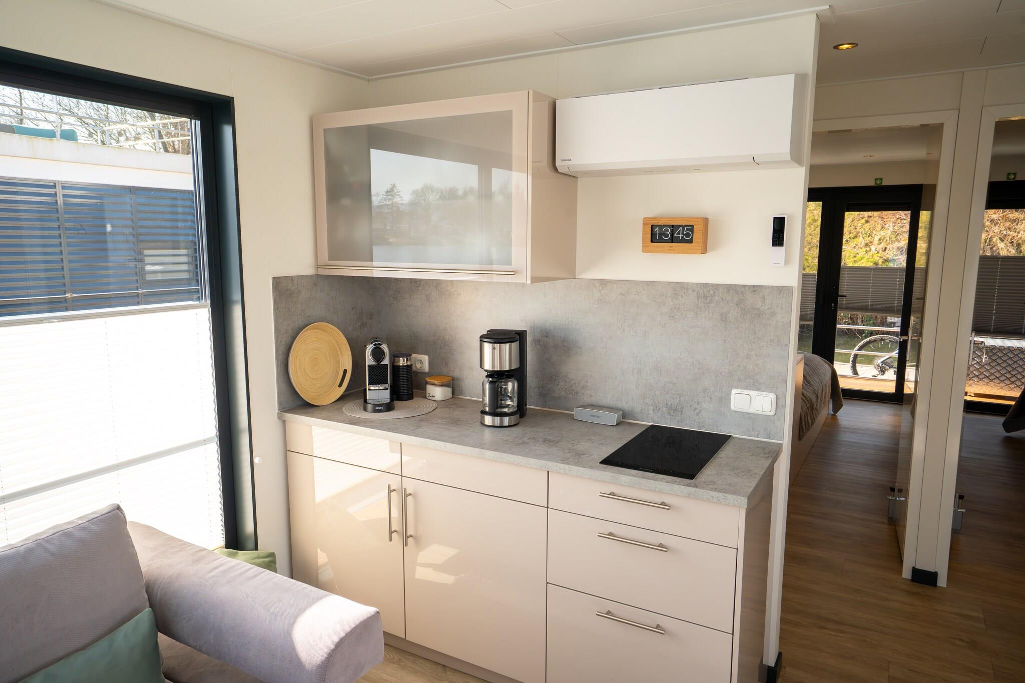 Det kan være så nemt at flygte fra hverdagen! Fast forankret på bølgerne byder husbåden på alt, hvad hjertet begærer med et fuldt udstyret boligareal af høj kvalitet (44 m²) og to solterrasser (40 m²). I et af de smukkeste ferieområder i Nordrhein-Westfalen, Weserbergland, venter en ferie i et luksuriøst indrettet flydende hus. At bo på vandet og nyde den betagende udsigt vil sikre ren afslapning efter blot et par timer, og du har næsten ikke lyst til at forlade dit sommerhus. Soveværelset og opholdsstuen er stilfuldt indrettet. De to separate soveværelser med dobbeltsenge, det fuldt udstyrede køkken og det moderne brusebadeværelse med separat toilet tilbyder alle de bekvemmeligheder, der garanterer en afslappende ferie. Slap nu af på terrassen eller på solterrassen med smuk og beroligende udsigt over søen og nyd din tid! Højdepunkter inkluderet: slutrengøring, vaskeripakke, alle forbrugsafhængige energiomkostninger, Wi-Fi, parkeringsplads