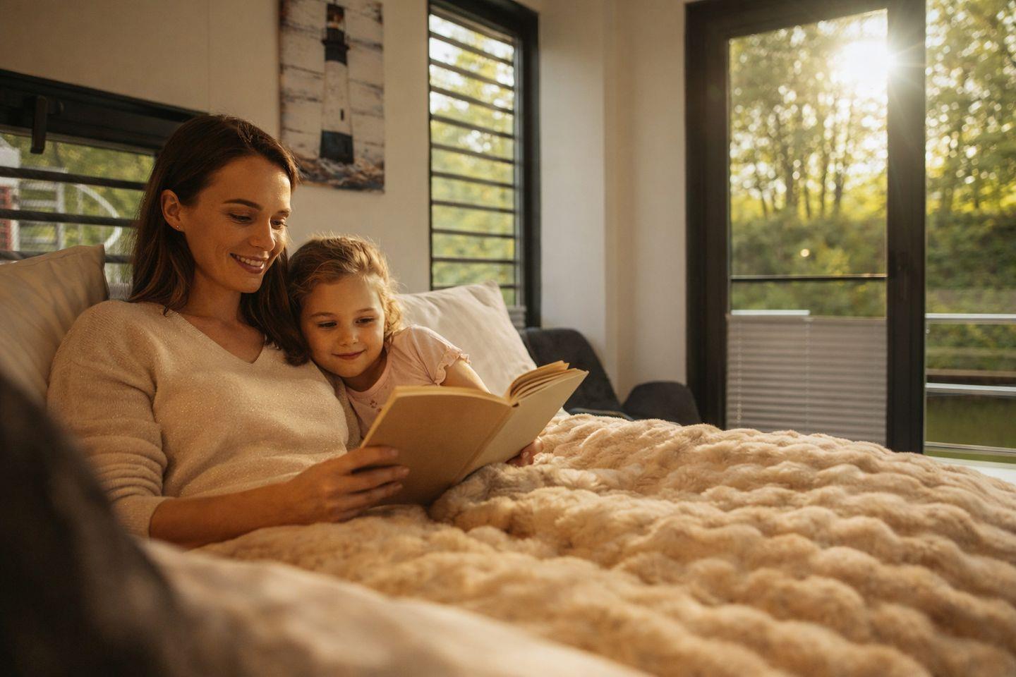 Auf 44 m² verteilen sich insgesamt 3 Zimmer, darunter 2 Schlafzimmer sowie ein Wohnzimmer mit gemütlicher Sofaecke und Essbereich. Insgesamt stehen Schlafmöglichkeiten für bis zu 4 Personen zur Verfügung. Für Komfort zu jeder Jahreszeit sorgen Heizung, Klimaanlage und ein Kamin-/Ofen. Sichtschutz an allen Fenstern sowie Fliegengitter unterstützen eine angenehme, ungestörte Atmosphäre.