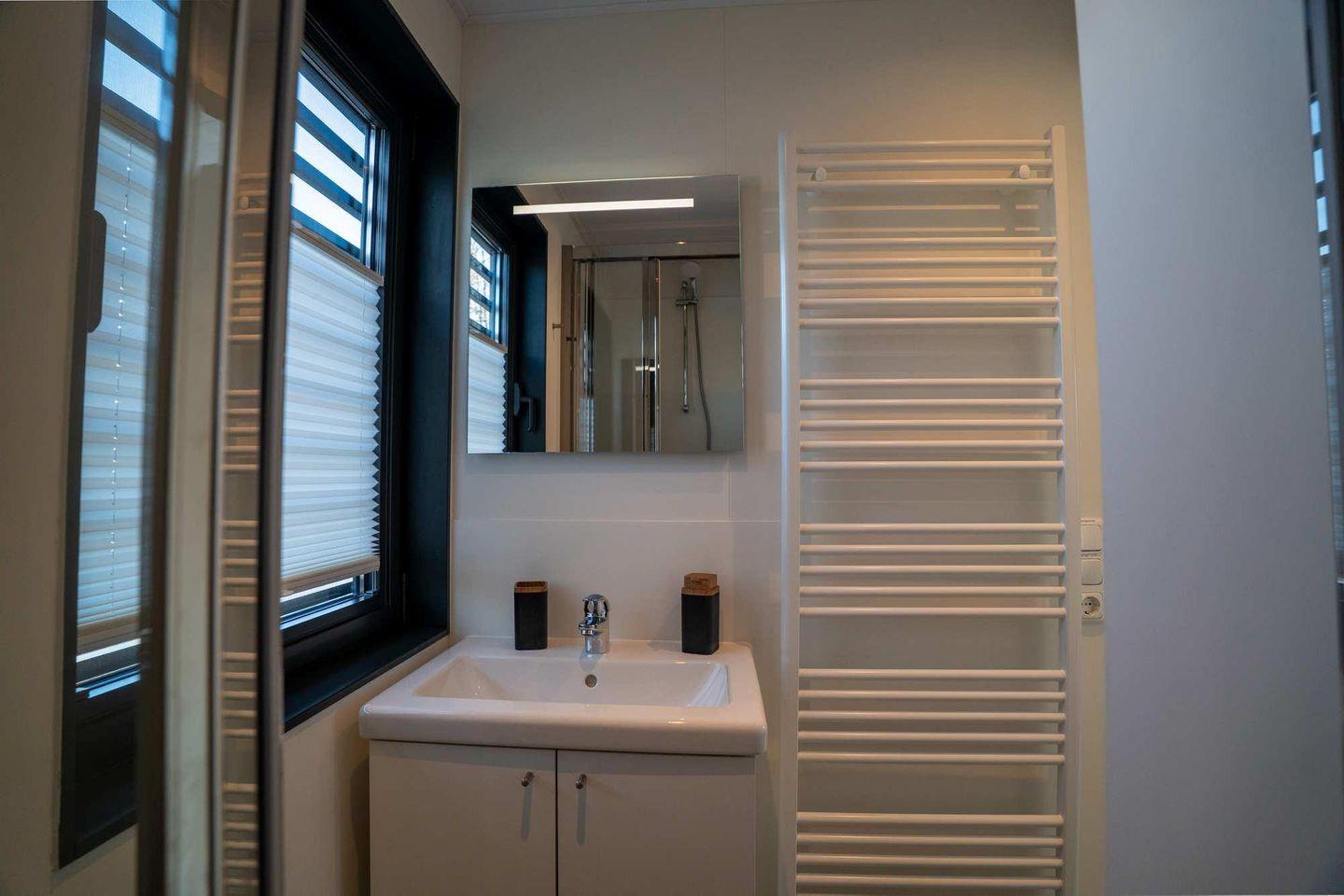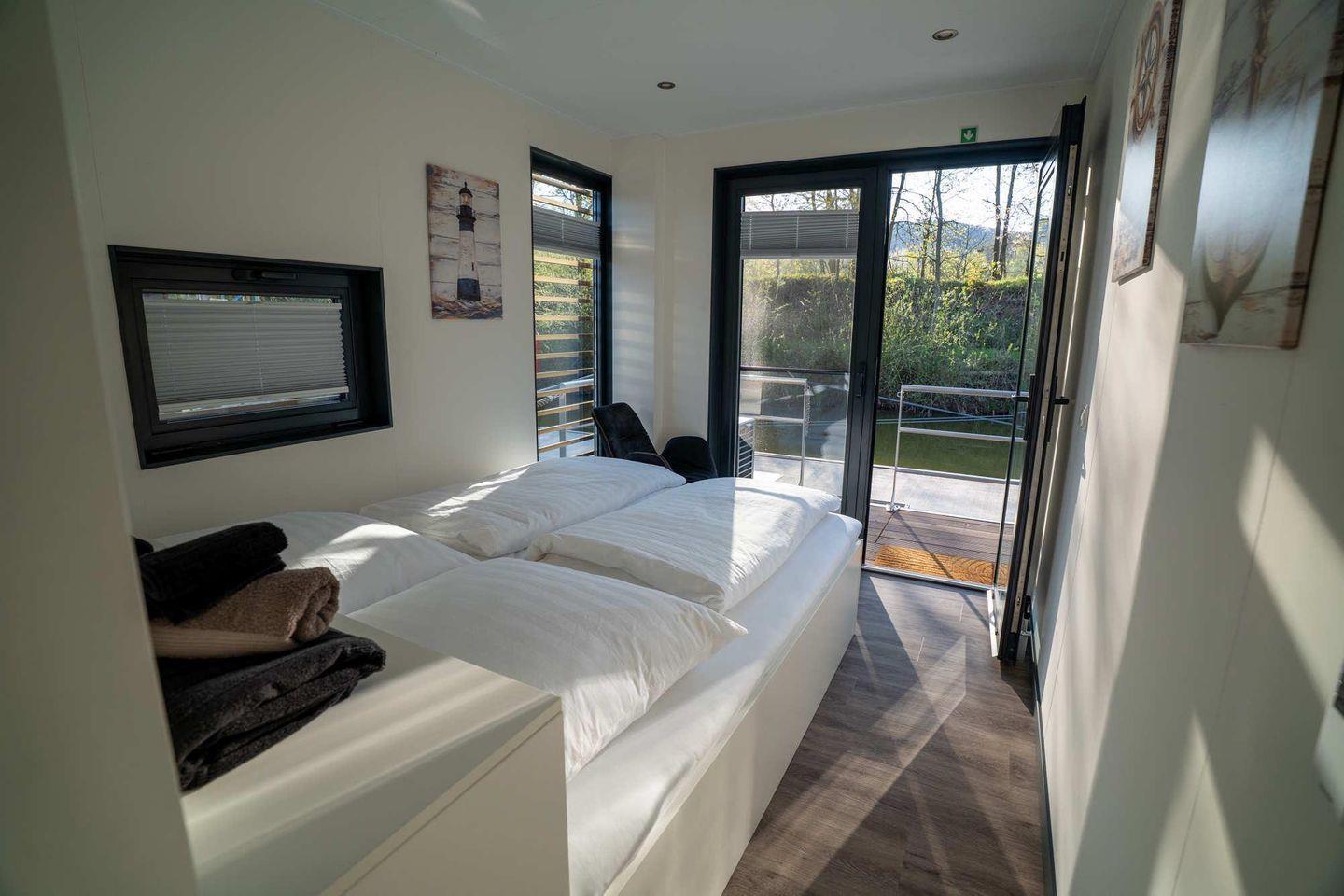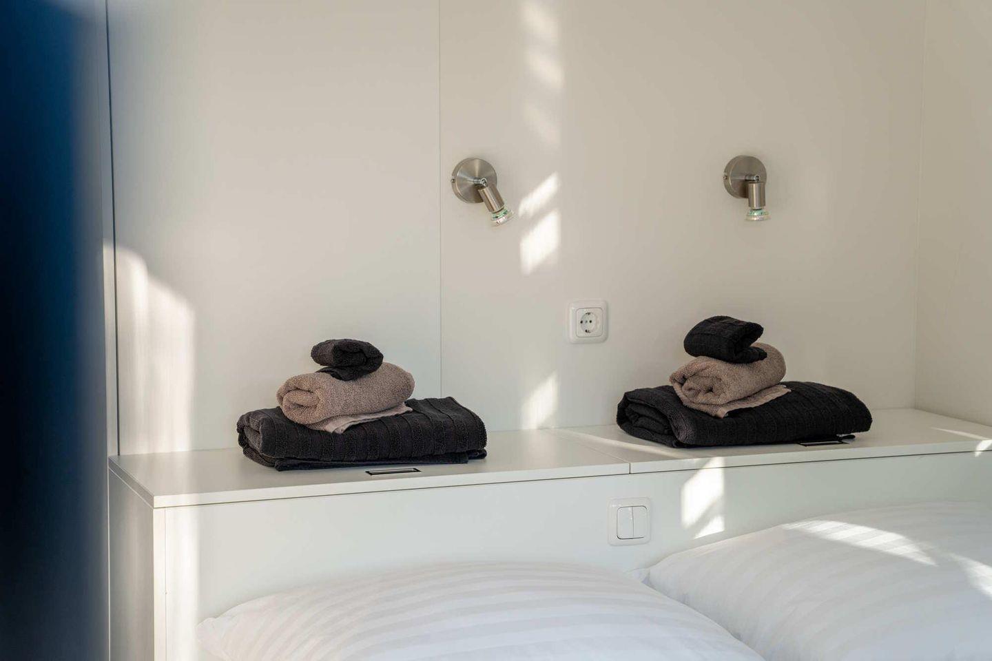 Das Floatinghouse verfügt über 1 Badezimmer mit Dusche, WC, Waschbecken, Spiegel, Fenster und warmem Wasser. Bettwäsche und Handtücher sind vorhanden, ebenso eine Erstausstattung für einen unkomplizierten Start in den Aufenthalt.