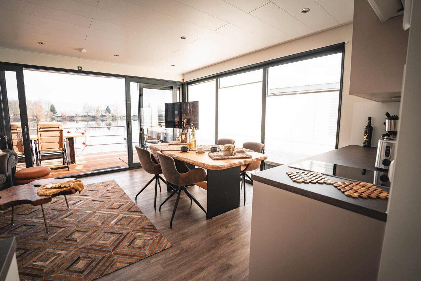 Das Floatinghouse Goldener Anker (44 m²) liegt direkt am See mit Steg, Seeblick und Landschaftsblick. Das freistehende Nichtraucher-Ferienhaus bietet 3 Zimmer, 2 Schlafzimmer, 1 Bad und Platz für 4 Personen. Offene Küche zum Wohnzimmer mit Ceranherd, Spülmaschine und Kaffeemaschine. Überdachte Terrasse mit Gartenmöbeln, Sonnenliegen und Elektrogrill, WLAN, TV, Klimaanlage.