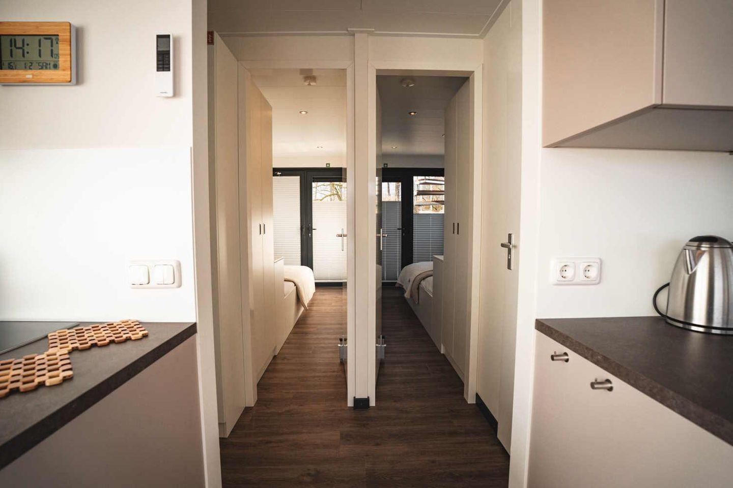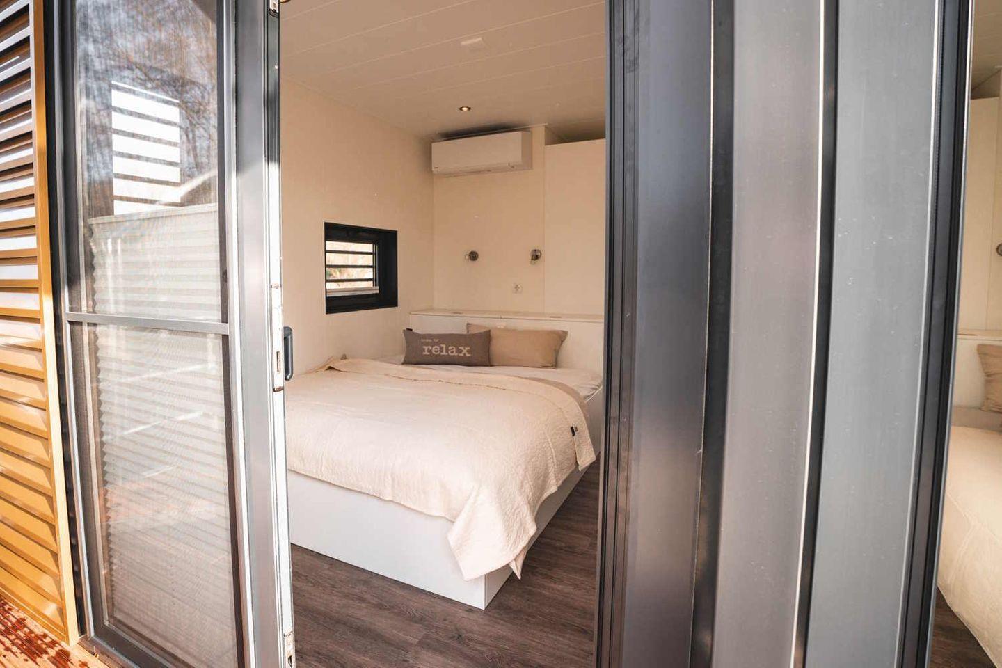 Im Inneren erwarten Sie insgesamt 3 Zimmer auf 44 m², darunter 2 Schlafzimmer, ein Wohnzimmer sowie 1 Badezimmer mit Dusche, WC, Waschbecken, Spiegel, Fenster und warmem Wasser. Für bis zu 4 Schlafmöglichkeiten ist alles auf komfortable, unkomplizierte Tage ausgelegt. Sichtschutz an allen Fenstern, Fliegengitter, Heizung und Klimaanlage sorgen dafür, dass Sie sich zu jeder Tageszeit und bei jedem Wetter wohlfühlen.