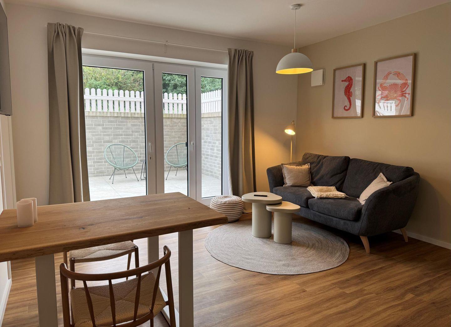 Salt & Sand Wohnung Sand ist eine 55 m² große, 2025 neu gebaute 2-Zimmer-Nichtraucherwohnung im Souterrain in Haffkrug. Sie bietet Platz für 2 Personen, eine große Terrasse mit Gartenmöbeln und Sonnenliegen, Fußbodenheizung, kostenloses WLAN sowie eine offene Küche mit Backofen, Ceranfeld und Spülmaschine. Strand, Meer, Bahnhof und Ortskern sind jeweils nur ca. 350 bis 500 m entfernt.