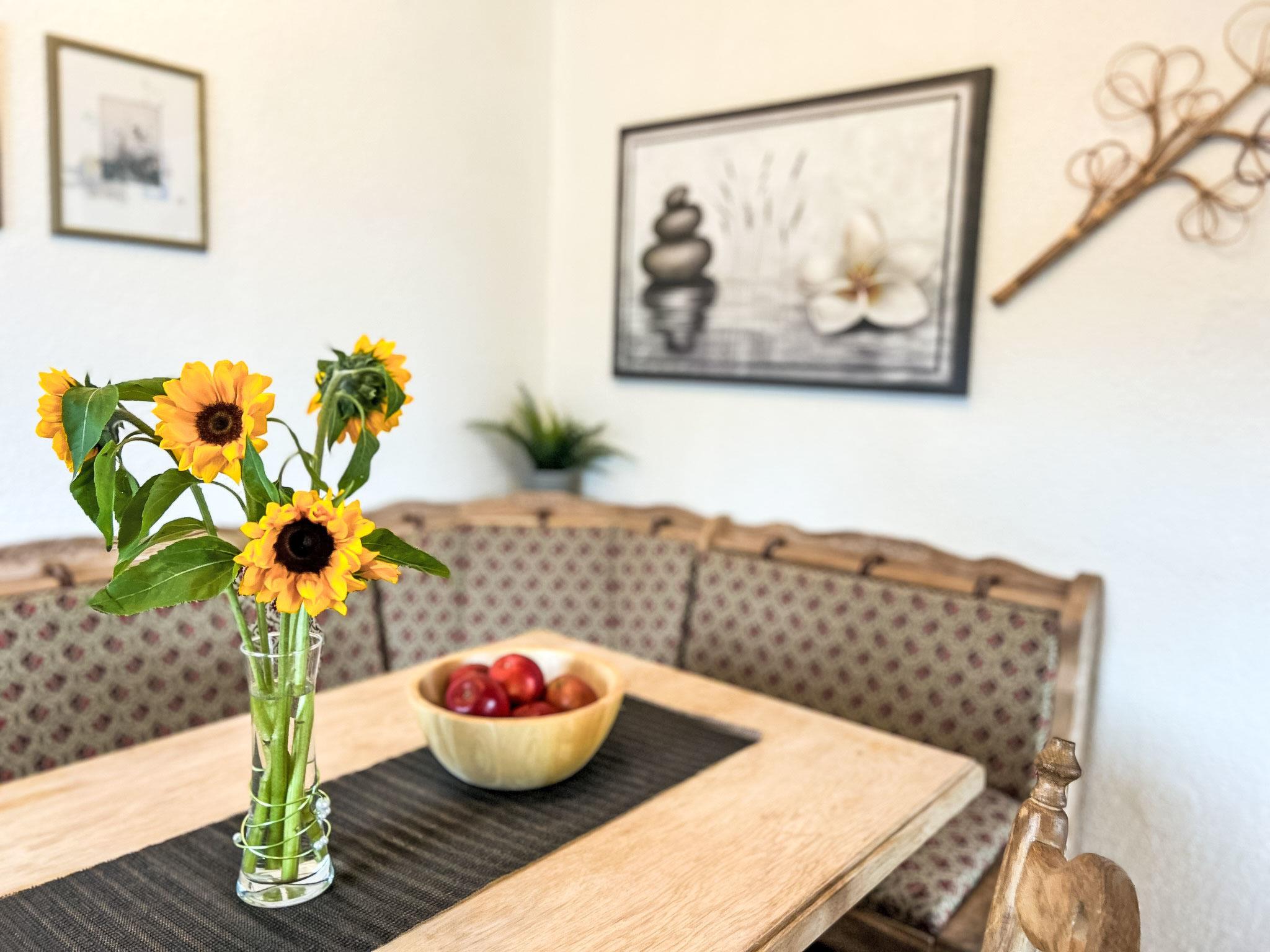 "Nobby", 3-room terraced house 50 m2. Object suitable for 2 adults + 3 children. Cosy furnishings: living/dining room with dining table and satellite TV (flat screen). Exit to the terrace. 1 room with 1 bed (180 cm, length 200 cm). 1 room with 1 x 2 bunk beds. Kitchen (oven, dishwasher, 4 ceramic glass hob hotplates, toaster, kettle, microwave, electric coffee machine). Shower/WC. Terrace, lawn. Terrace furniture. Facilities: children's high chair, baby cot for up to 2 year olds. Internet (WiFi, free). Please note: non-smoking house. Maximum 2 pets/ dogs allowed. Smoke alarm. Il letto a castello ha una dimensione di 90 cm x 200 cm nella parte superiore e una dimensione di 140 cm x 200 cm nella parte inferiore.