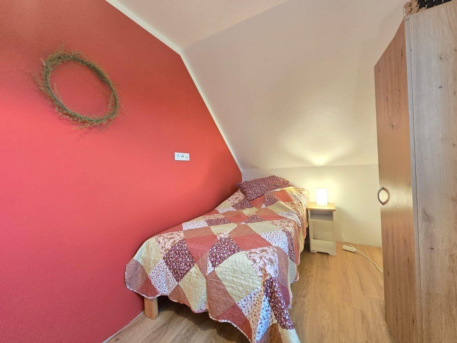 Die Ferienwohnung bietet barrierefreien Zugang und verfügt über einen eigenen Parkplatz. Ein komfortabler Arbeitsplatz ermöglicht produktives Arbeiten, während der Blick auf den gepflegten Garten für Entspannung sorgt. Ideal für Reisende, die Wert auf Komfort und Ruhe legen. Ungeeignet für Gäste, die eine weitere Ausstattung benötigen, da keine zusätzlichen Angebote vorhanden sind.