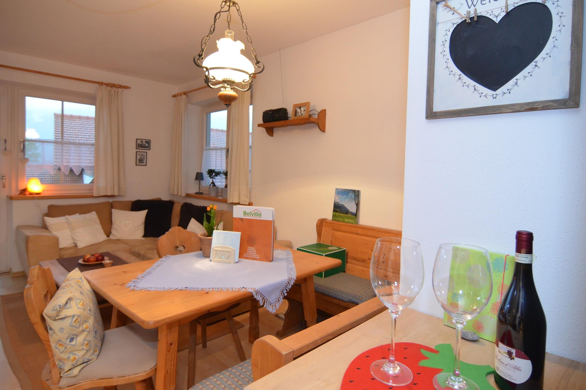 Denne kæledyrsvenlige lejlighed på første sal i Halblech tilbyder et hyggeligt tilflugtssted for par eller små familier. Det har et soveværelse med dobbeltseng, en varm stue/spisestue med brændeovn og et åbent køkken udstyret med keramisk komfur, ovn, opvaskemaskine og køleskab med fryser. Badeværelset har bruser, og gennemtænkte detaljer som en børneseng og høj stol gør det familievenligt. En privat balkon og 50 m² have med grill og møbler inviterer til udendørs afslapning. Gæsterne kan nyde central- og gulvvarme, radio og privat parkering. Layoutet er enkelt, men funktionelt, ideelt til helårsophold. Uanset om du nyder en kaffe på balkonen eller nyder en stille aften ved komfuret, blander denne lejlighed rustik charme med moderne komfort. I nærheden kan du besøge det ikoniske Neuschwanstein Slot, kun få minutter væk, eller beundre rokokoskønheden i pilgrimskirken Wies. Naturelskere kan vandre på Ammergebirge-stierne eller slappe af ved Bannwaldsee-søen. Til spisning kan du prøve Gasthof Hirsch for bayerske klassikere, Schlossbrauhaus Schwangau for solid mad og lokale bryggerier, eller Madame Plüsch i Füssen for et romantisk måltid. Med skovstier og skilifter kun 500 meter væk, er denne lejlighed en perfekt base for dit Allgäu-eventyr.