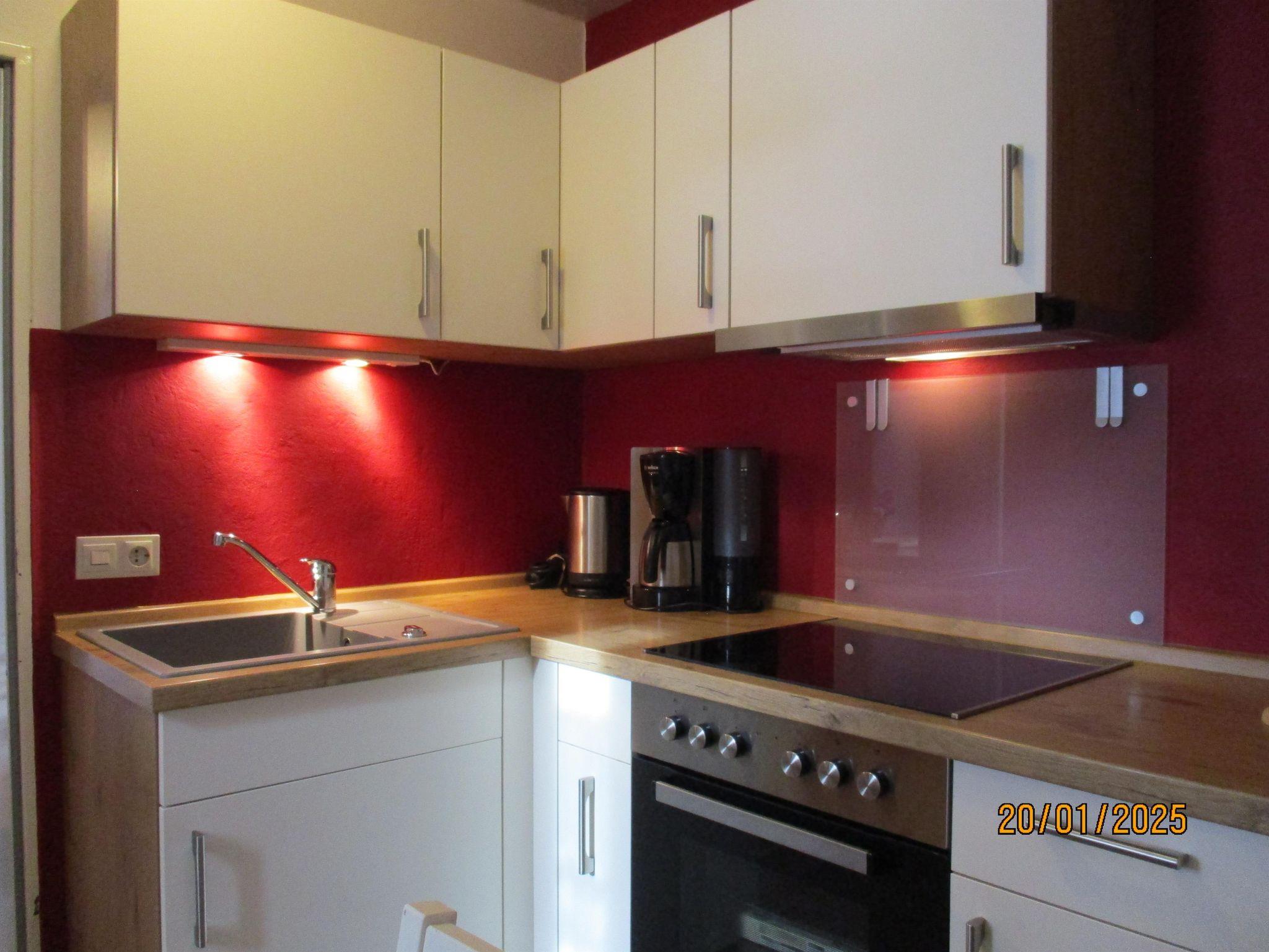 Die gemütliche 35 qm große Ferienwohnung befindet sich im 1. Stock und bietet einen kombinierten Wohn- und Schlafraum mit einem komfortablen Doppelbett. Eine separate Küche ist vollständig ausgestattet mit Elektroherd, Backofen, Kühlschrank, Kaffeemaschine, Toaster und Wasserkocher, sodass alle Annehmlichkeiten für die Selbstverpflegung vorhanden sind. Das Badezimmer verfügt über eine separate Dusche und ein WC. Zur Unterhaltung steht ein SAT-TV zur Verfügung. Bettwäsche ist inklusive, und auf Wunsch kann eine Waschmaschine genutzt werden. Zudem lädt der Garten zum Verweilen und Entspannen ein.