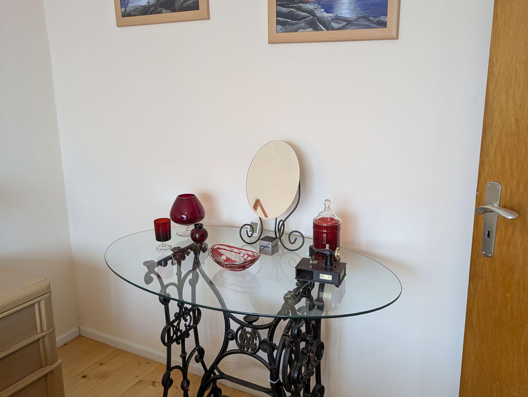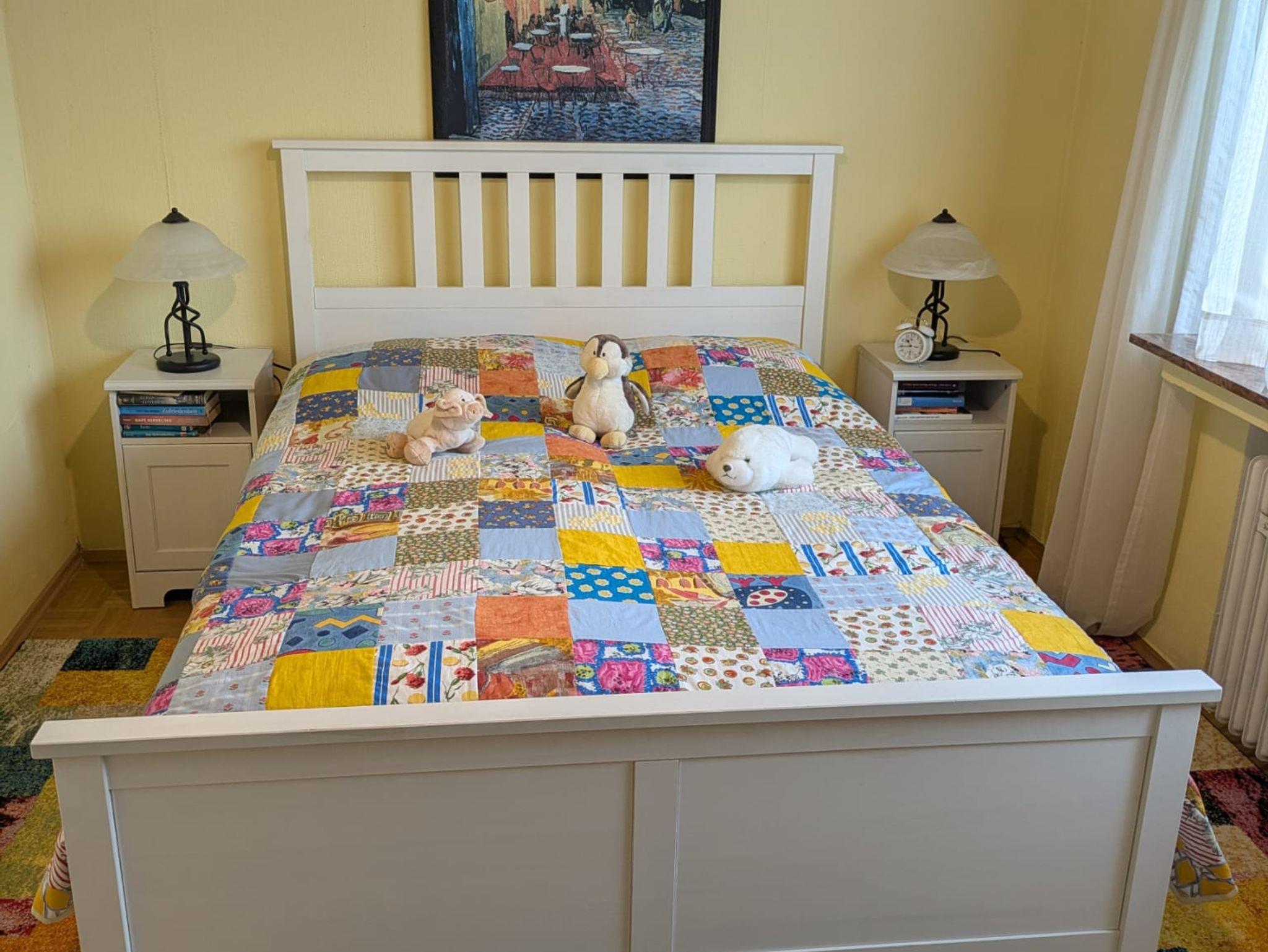 Die Wohnung ist rustikal und liebevoll eingerichtet, ganz im Einklang mit der ländlichen Idylle unseres Hofes. Das kleinere Schlafzimmer verfügt über ein 140 cm breites Doppelbett, zwei Nachttische und einen geräumigen Kleiderschrank. Ein Fenster zum Vorgarten schenkt dem Raum viel Licht und eine freundliche Atmosphäre. Das größere Schlafzimmer ist mit einem 180 cm breiten Doppelbett, zwei Nachttischen, einem Kleiderschrank und einer Frisierkommode ausgestattet. Auch hier öffnet sich ein Fenster mit Blick in den Vorgarten und verleiht dem Raum eine helle, einladende Stimmung.