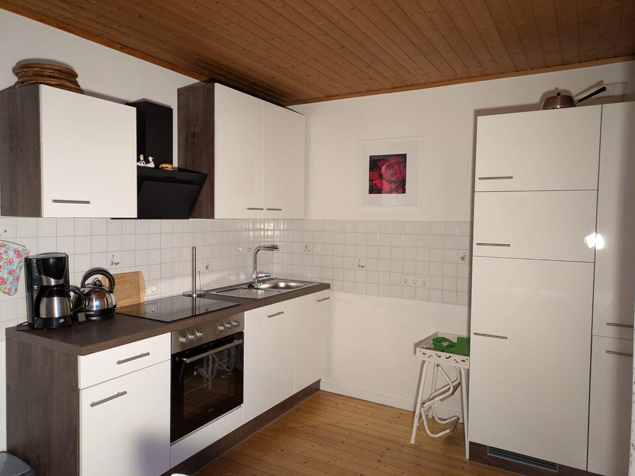 Die großzügige Küche lässt keine Wünsche offen. Sie ist vollständig ausgestattet und bietet reichlich Geschirr sowie Küchenutensilien für 6–8 Personen – ideal für gemeinsame Mahlzeiten. Auch von der Küche aus haben Sie Zugang zum Balkon und genießen einen beeindruckenden Ausblick über Hallenberg, der Ihren Aufenthalt zu etwas ganz Besonderem macht.