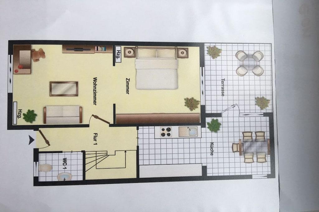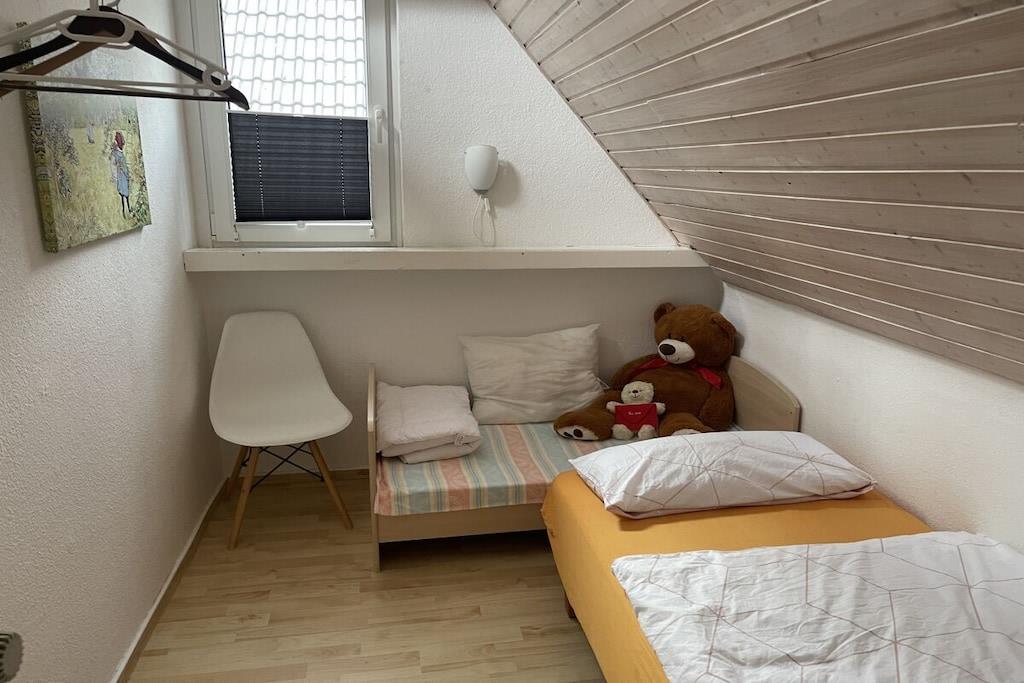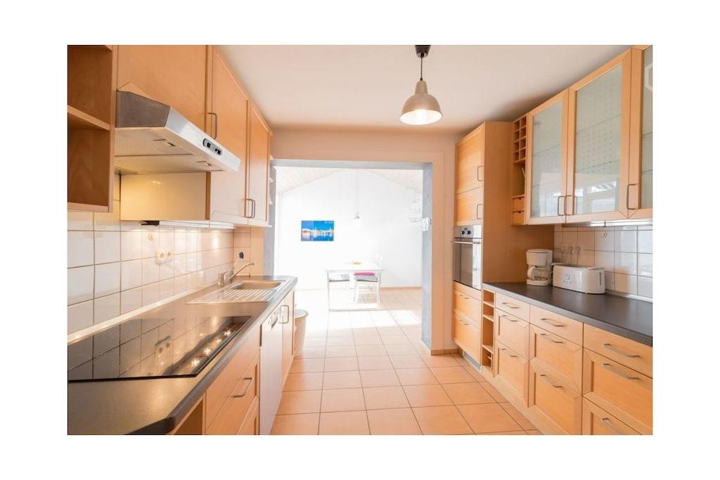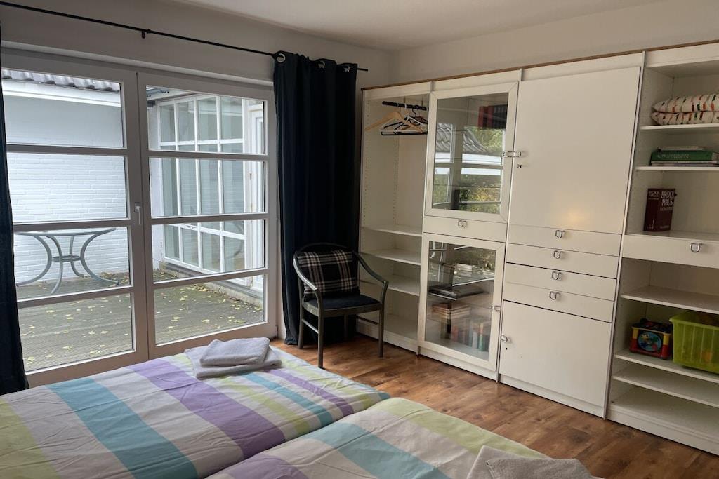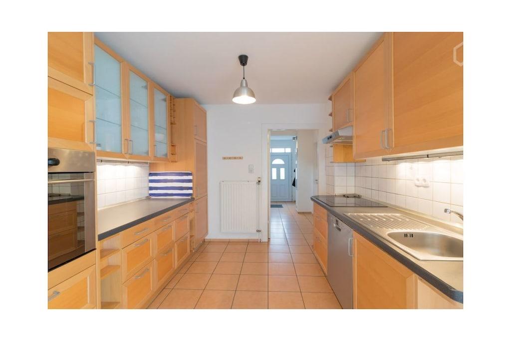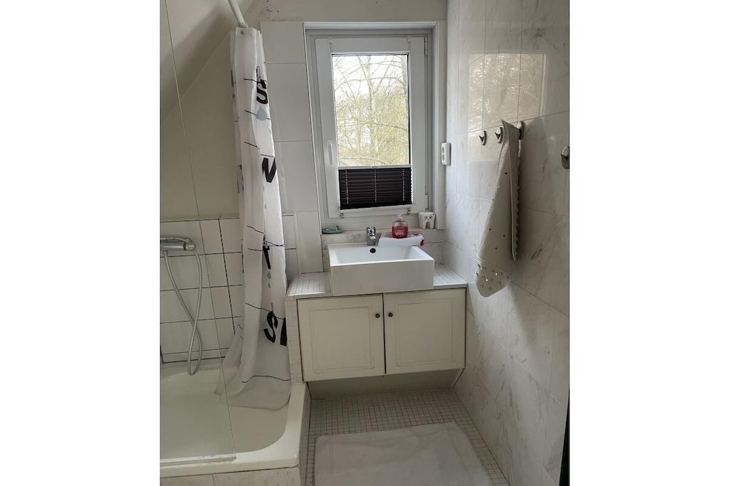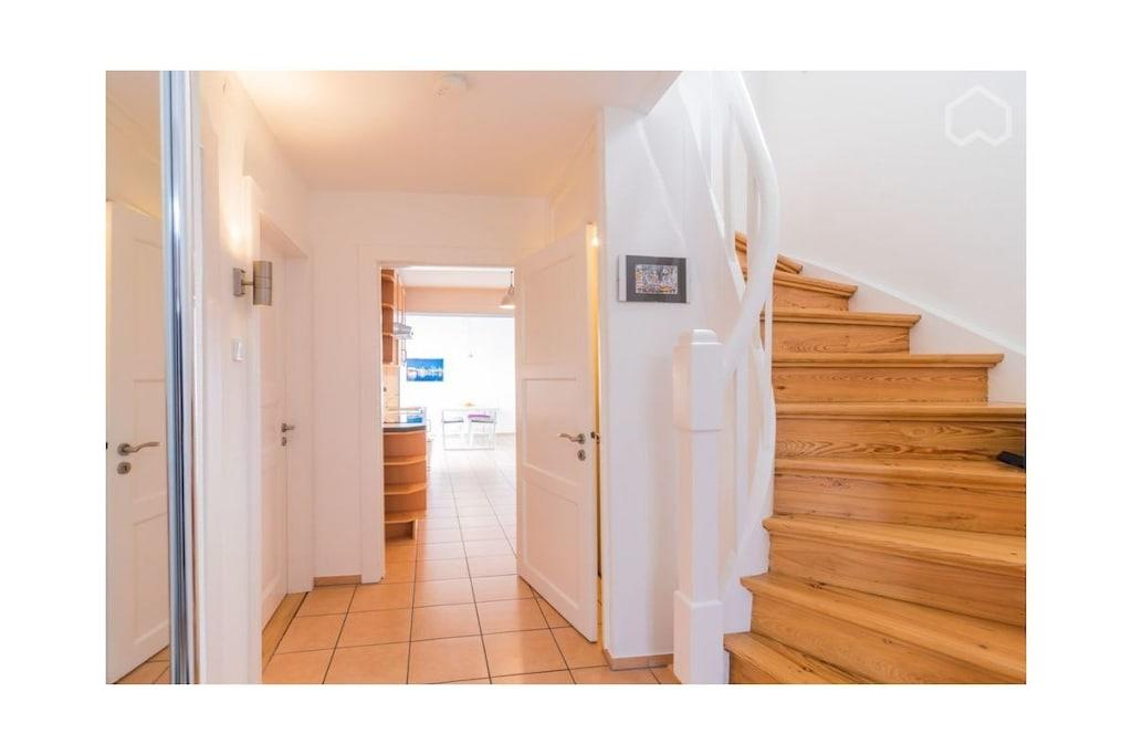 Dobbelthus med 5 soveværelser i et smukt villa- og skovområde i Hamborg. ... Disponibelt areal 130m² (ca. 70m² stueetage, 40m² loft). (Et 20m² vaskerum i kælderen med vaskemaskine og tørretumbler er til rådighed.) Køkken med opvaskemaskine, keramisk kogeplade, køleskab med fryser, elkedel, kaffemaskine, brødrister, ovn og alt nødvendigt udstyr til 6 personer. Adgang til stue med 6 lænestole, bord og TV. Dejlig, privat træterrasse med bord og stole. Soveværelse 1 i stueetagen med enkeltseng, lænestol, bord, TV og antikt klædeskab. Soveværelse 2 i stueetagen med enkeltseng, klædeskab, lænestol og bord. Loft: Værelse 3: stor enkeltseng Værelse 4: 1 enkeltseng Værelse 5: 1 enkeltseng Der er et brusebadeværelse med siddepladser, et veludstyret køkken og et fællesrum med spisebord og 5 stole. Der er et andet toilet i stueetagen.
