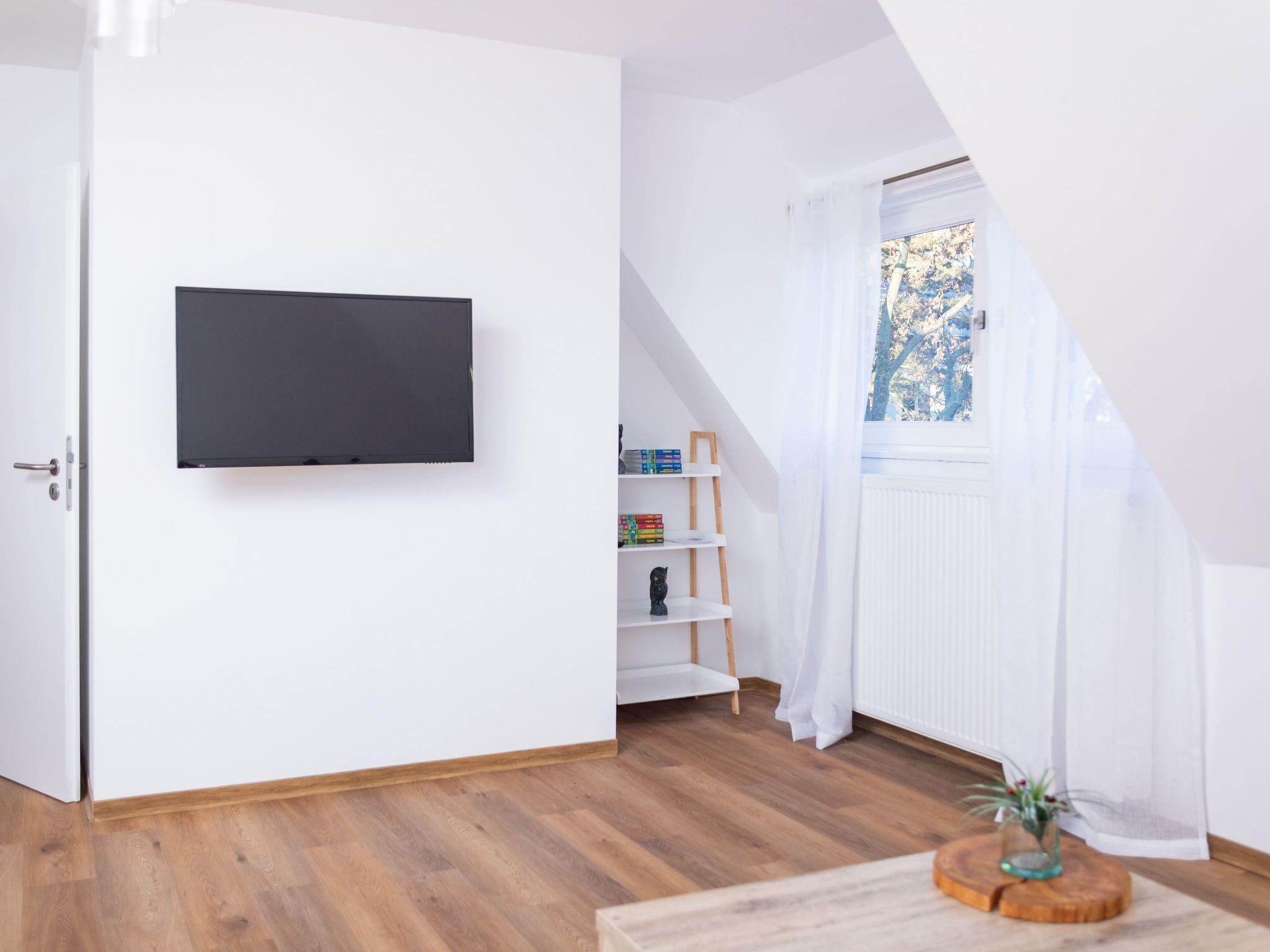 The holiday flat is equipped with a double bed, 160 x 200 and a large bathroom. Furthermore, you have a fully equipped kitchenette, so the flat is also intended for longer stays. You will also find a small desk for working in the flat. It is ideal for courses at the academy or training courses in Hamelin and the surrounding area.