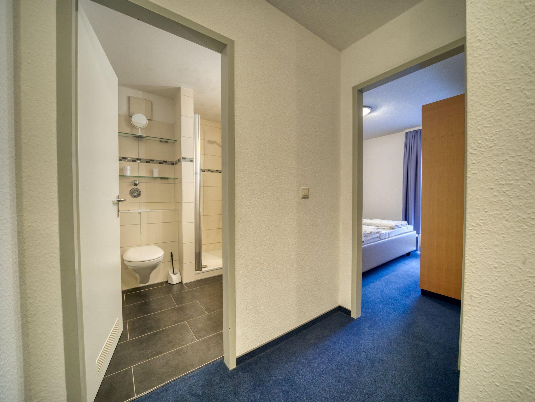 Bad: Mit Dusche (Kabine), WC, Handtuchheizkörper und großzügigem Eingangsbereich mit Stauraum