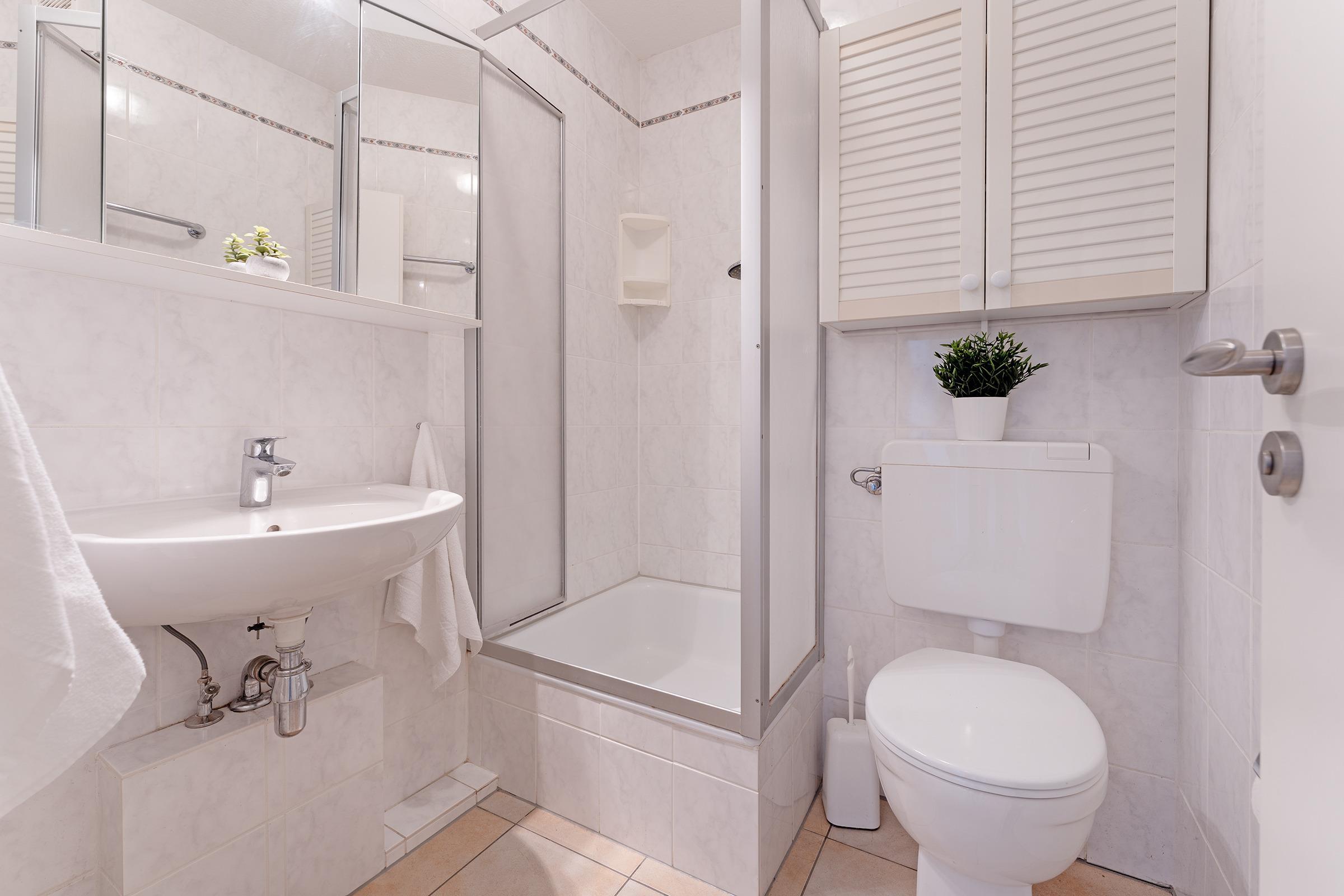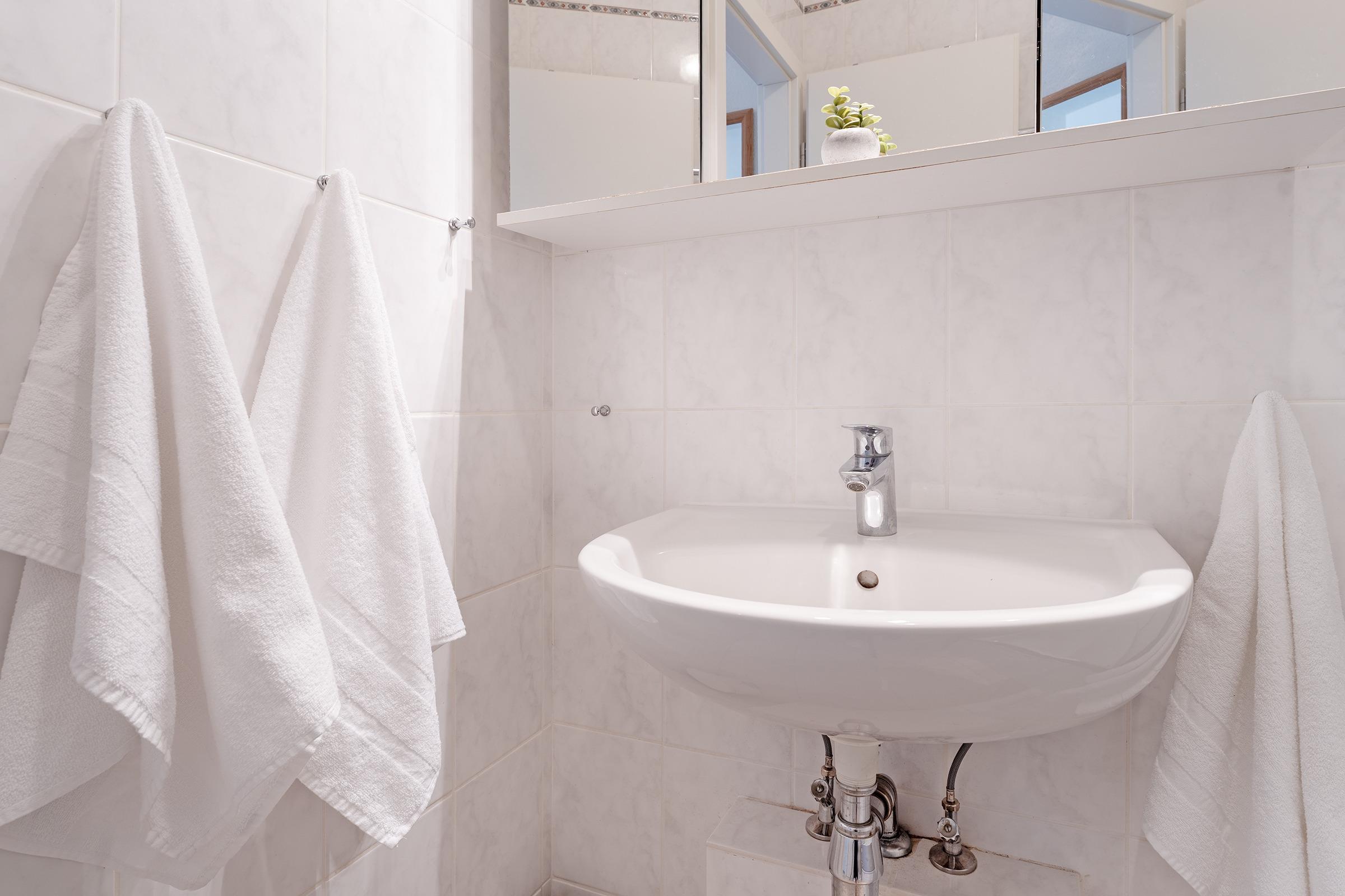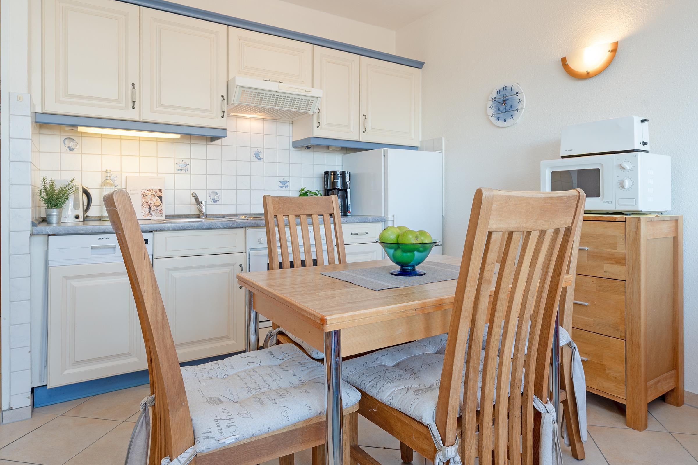 Die angrenzende Küche ist vollständig ausgestattet und lässt keine Wünsche offen: Ein Cerankochfeld, ein Backofen, eine Spülmaschine sowie eine Kaffeemaschine, ein Wasserkocher und ein Toaster stehen für die Zubereitung Ihrer Mahlzeiten bereit. Ein komfortables Schlafzimmer mit gemütlichem Doppelbett sorgt für erholsame Nächte. Das zweite Schlafzimmer verfügt über ein Etagenbett. Das moderne Badezimmer ist mit einer Dusche mit Wanne, Waschbecken, WC und Haartrockner ausgestattet. Eine gemeinschaftliche Waschmaschine und ein Trockner stehen gegen Gebühr zur Verfügung.