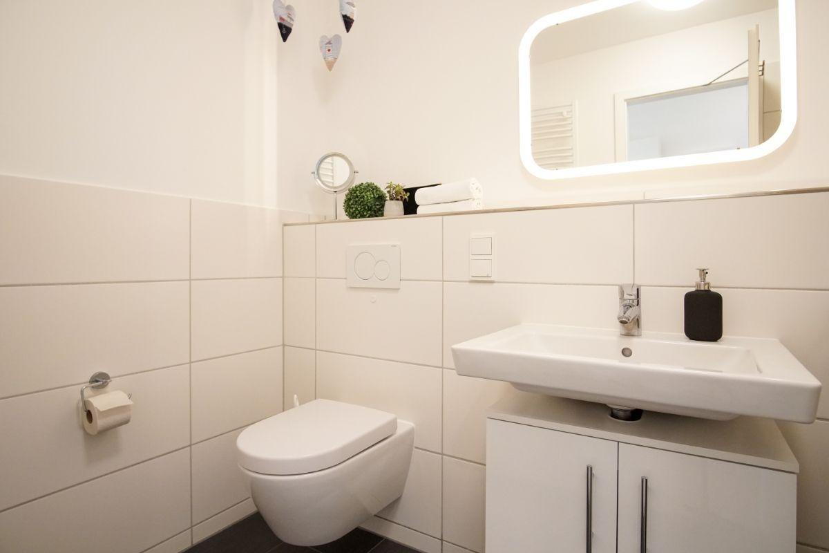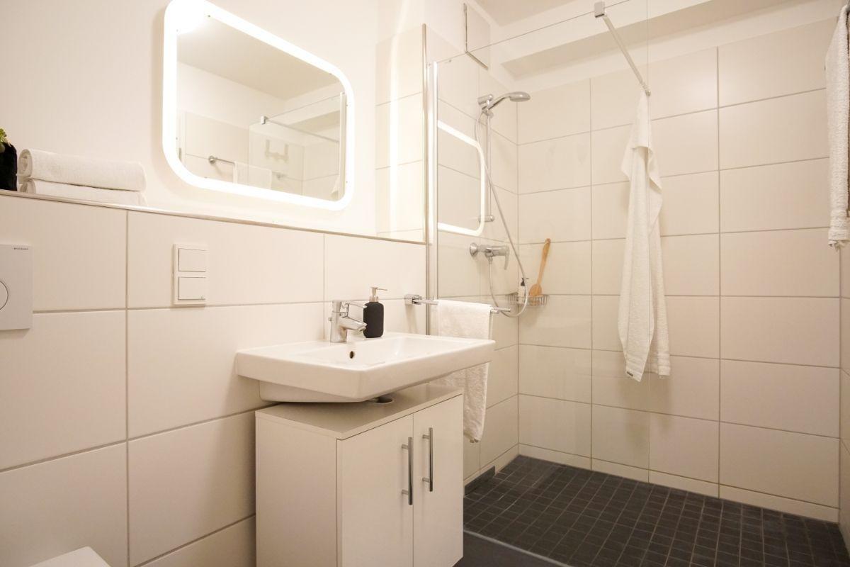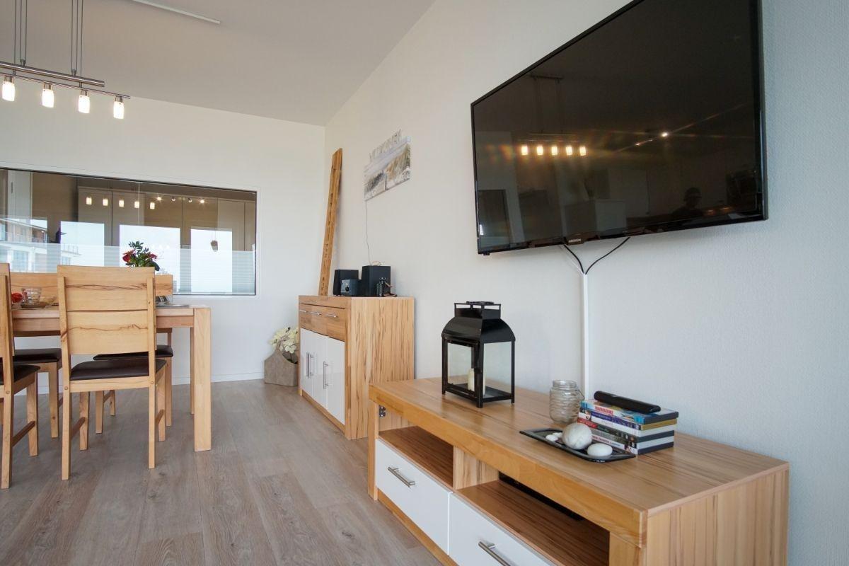 Urlauben Sie auf großzügigen 57 m² (1. Etage) mit Nord-Balkon. Das lichtdurchflutete Wohnzimmer ist mit einer gemütlichen Sofaecke (Schlafsofa) und Flatscreen-TV ausgestattet. Im Essbereich finden bequem vier Personen Platz zum Schlemmen. Die angrenzende Küchenzeile ist, für den Urlaubsbedarf, voll ausgestattet. Ein Backofen und ein Geschirrspüler gehören ebenso dazu, wie die Kaffeemaschine, der Wasserkocher und ein Toaster. Geschirr und Besteck sind ausreichend vorhanden. Das Schlafzimmer verfügt über ein gemütliches Doppelbett (180*200cm). Das Badezimmer ist mit einer ebenerdigen Dusche mit Glastrennwand und einem Handtuchheizkörper ausgestattet.