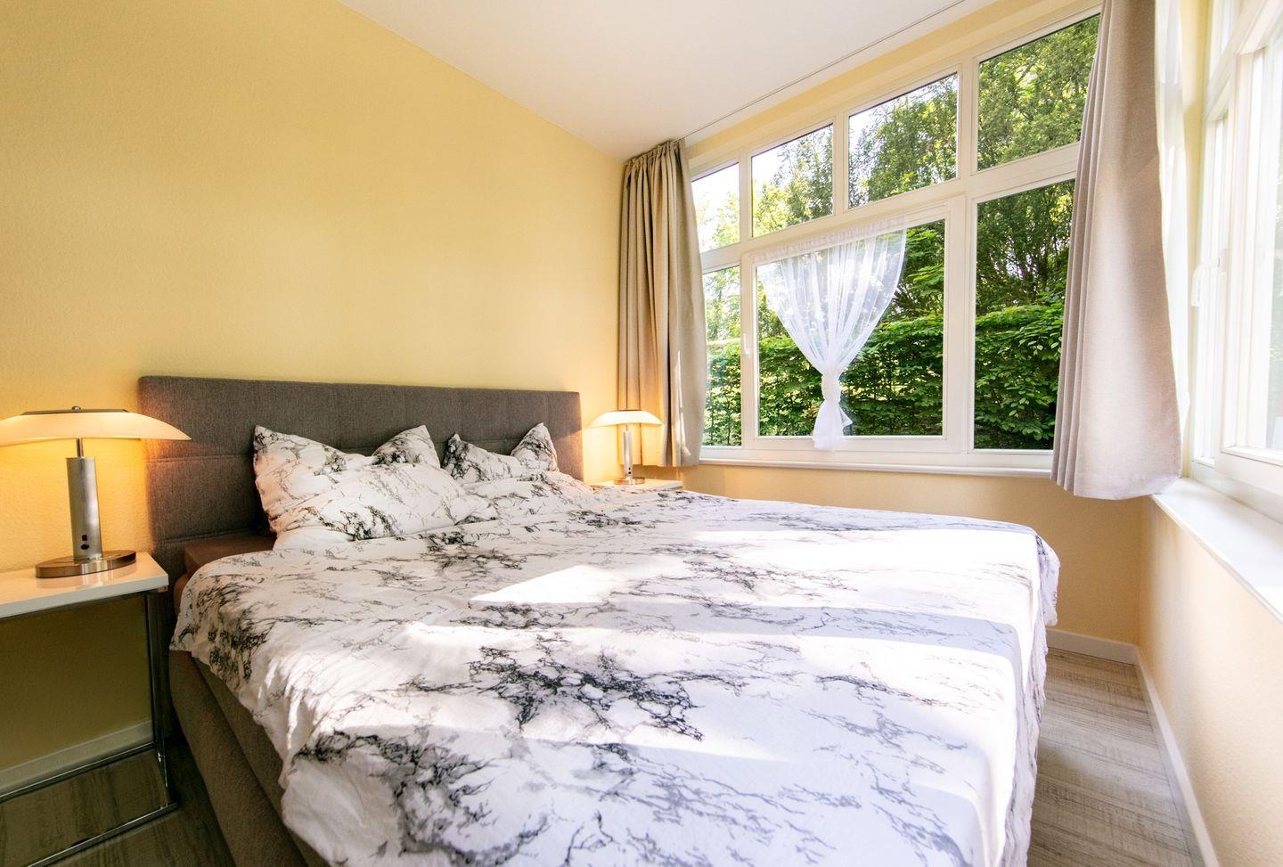 Die bequeme Couch kann zu einem vollwertigen Bett für 2 Personen umgewandelt werden. Für unsere kleinen Gäste stehen ein Reisebett und ein Hochstuhl bereit. Vom lichtdurchfluteten Schlafzimmer mit Boxspringbett haben Sie Aussicht auf den Park. Ein zweites kleines Zimmer ist mit einem Etagenbett eingerichtet.