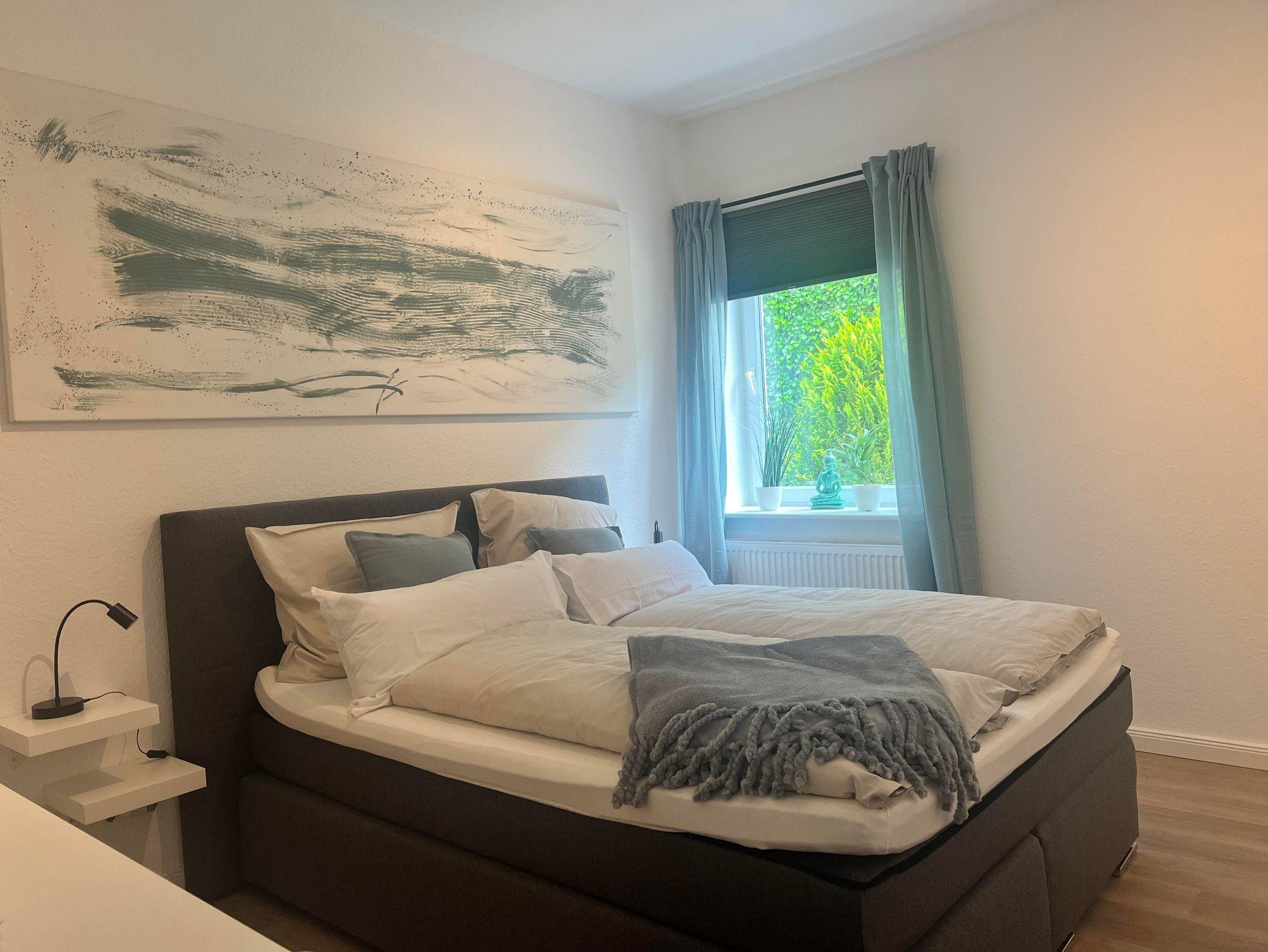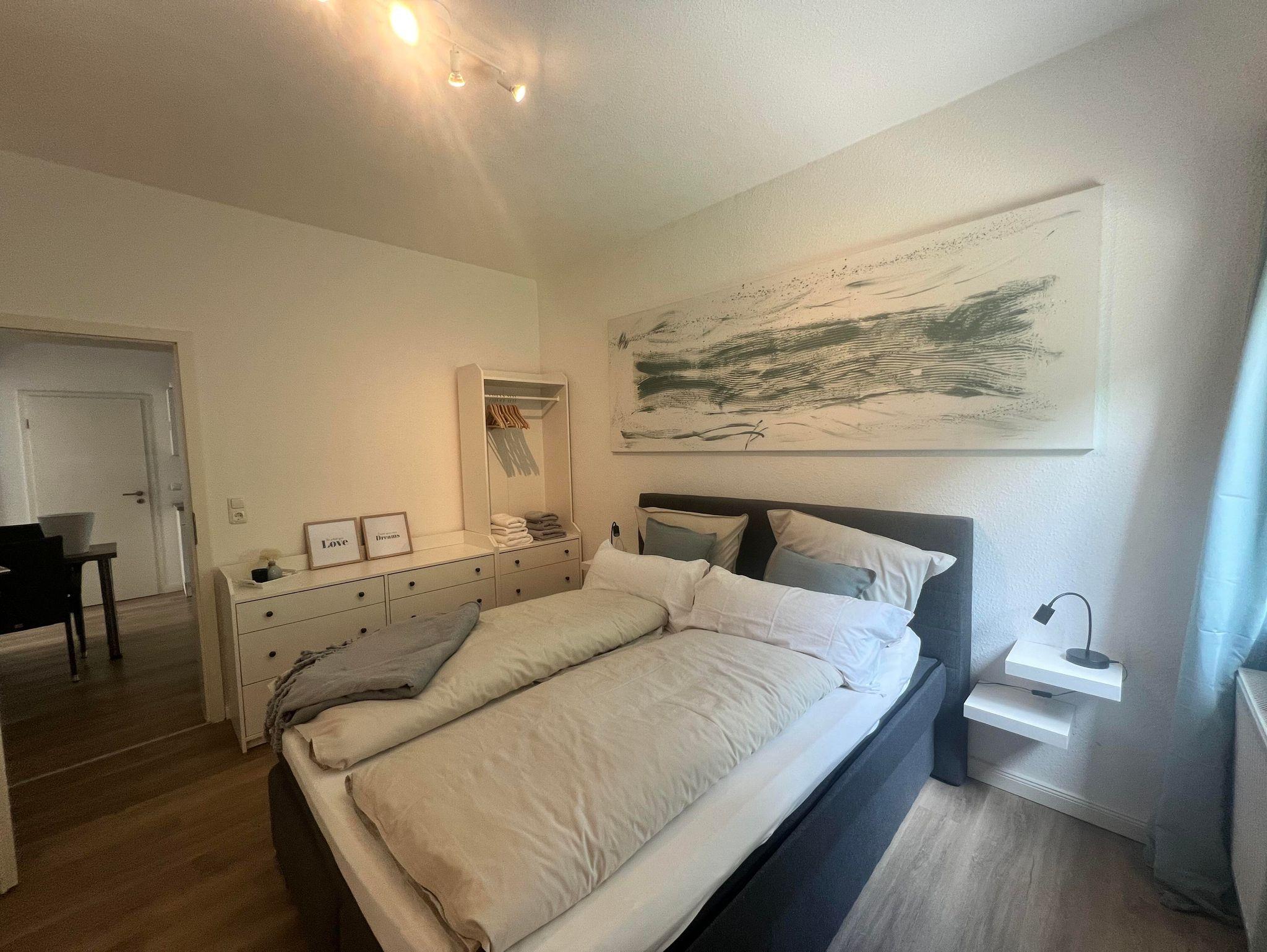 Die Wohnung verfügt über zwei komfortable Schlafzimmer, die jeweils mit hochwertigen Boxspringbetten, sowie einem eigenen Fernseher ausgestattet sind – ideal für erholsame Nächte und entspannte Stunden.