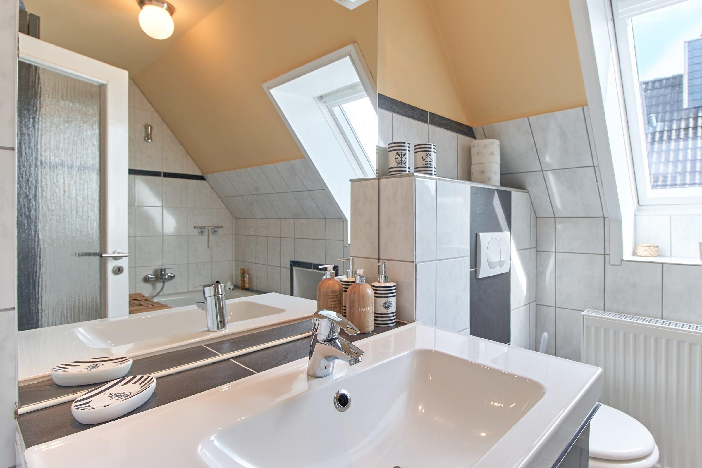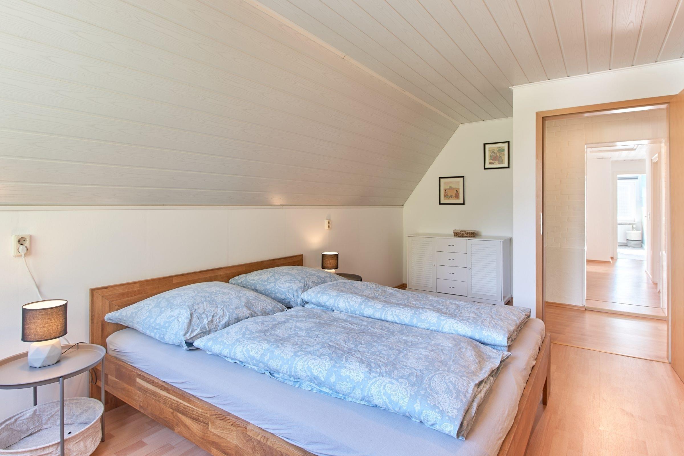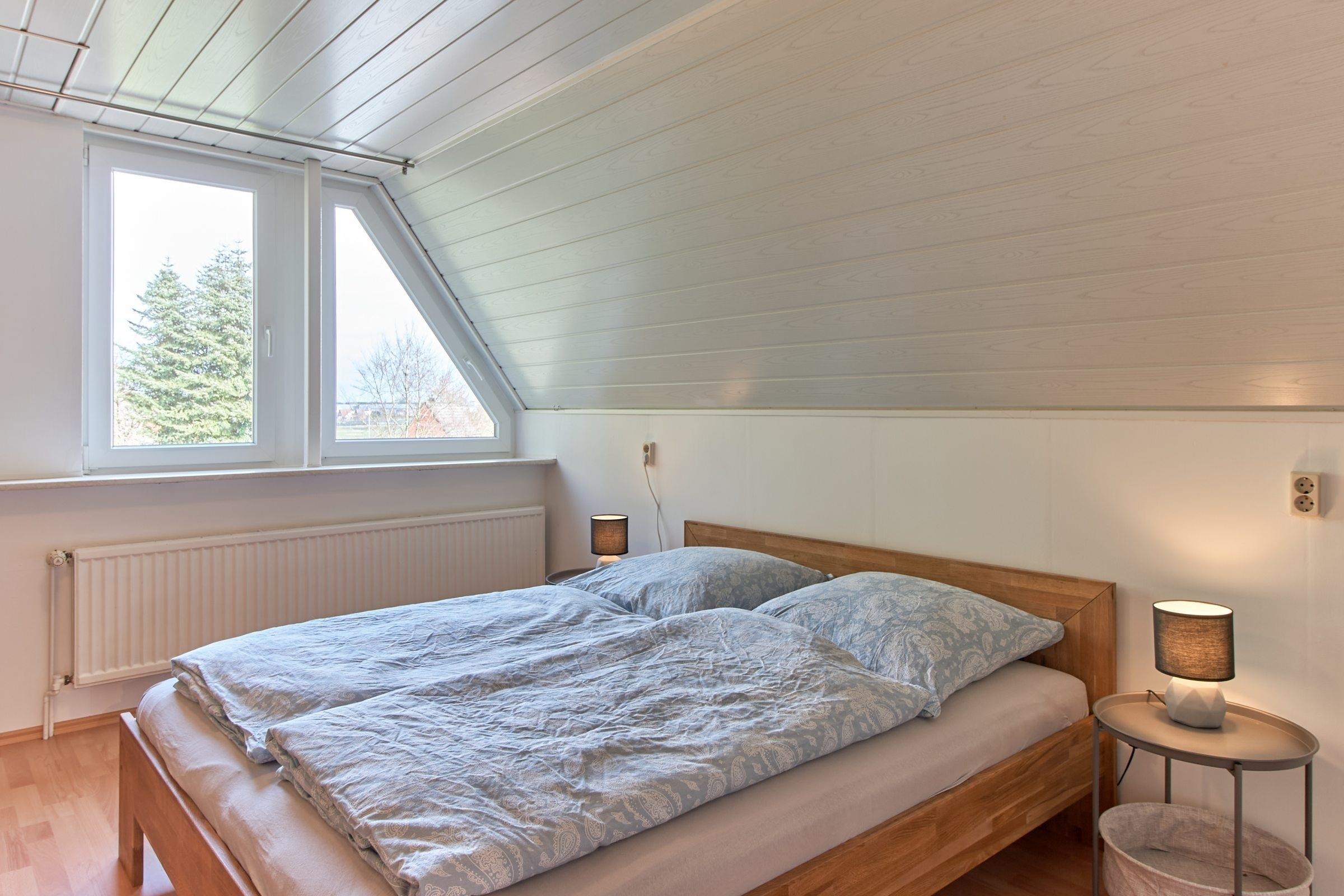 Im Obergeschoss erwarten Sie zwei liebevoll eingerichtete Schlafzimmer mit komfortablen Doppelbetten (1,80 × 2,00 m [&] 1,60 × 2,00 m),