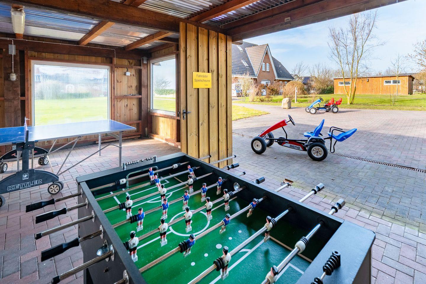 Ihre mitgebrachten Fahrräder können Sie sicher und geschützt in einer Scheune unterstellen. In einem Gemeinschaftsraum stehen Ihnen Waschmaschine und Trockner gegen Gebühr zur Verfügung. Auch für die Kleinen ist gesorgt: in einer kleinen Scheune können sie sich mit den Großen an der Tischtennisplatte oder aber am Kicker messen. Ansonsten laden die großen Grünflächen die Kleinen und Großen zum Toben und Fußballspielen ein.