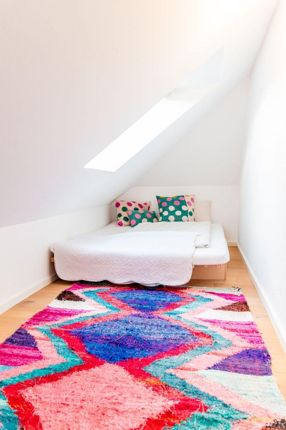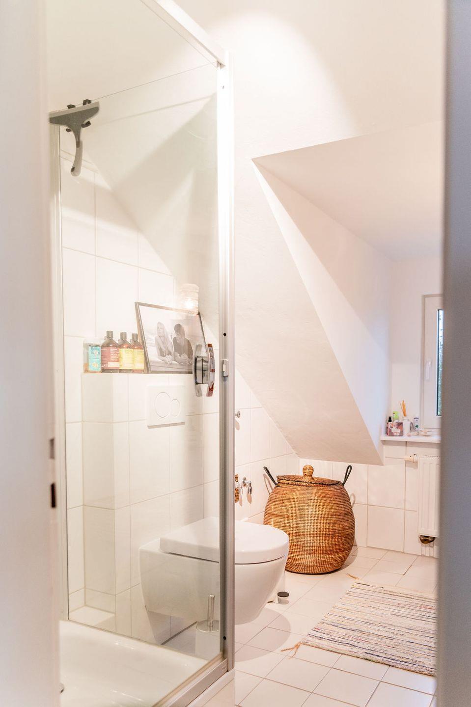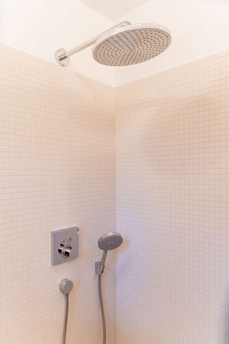 Die Treppe hochgehend, im ersten Obergeschoss befindet sich ein großer Raum mit einem Familienbett, einer Küchenzeile und einem Esstisch. Ein weiteres Schlafzimmer mit Futonbett und ein drittes Schlafzimmer mit zwei Einzelbetten. Das zweite Badezimmer im oberen Bereich, hat ebenfalls eine Dusche.