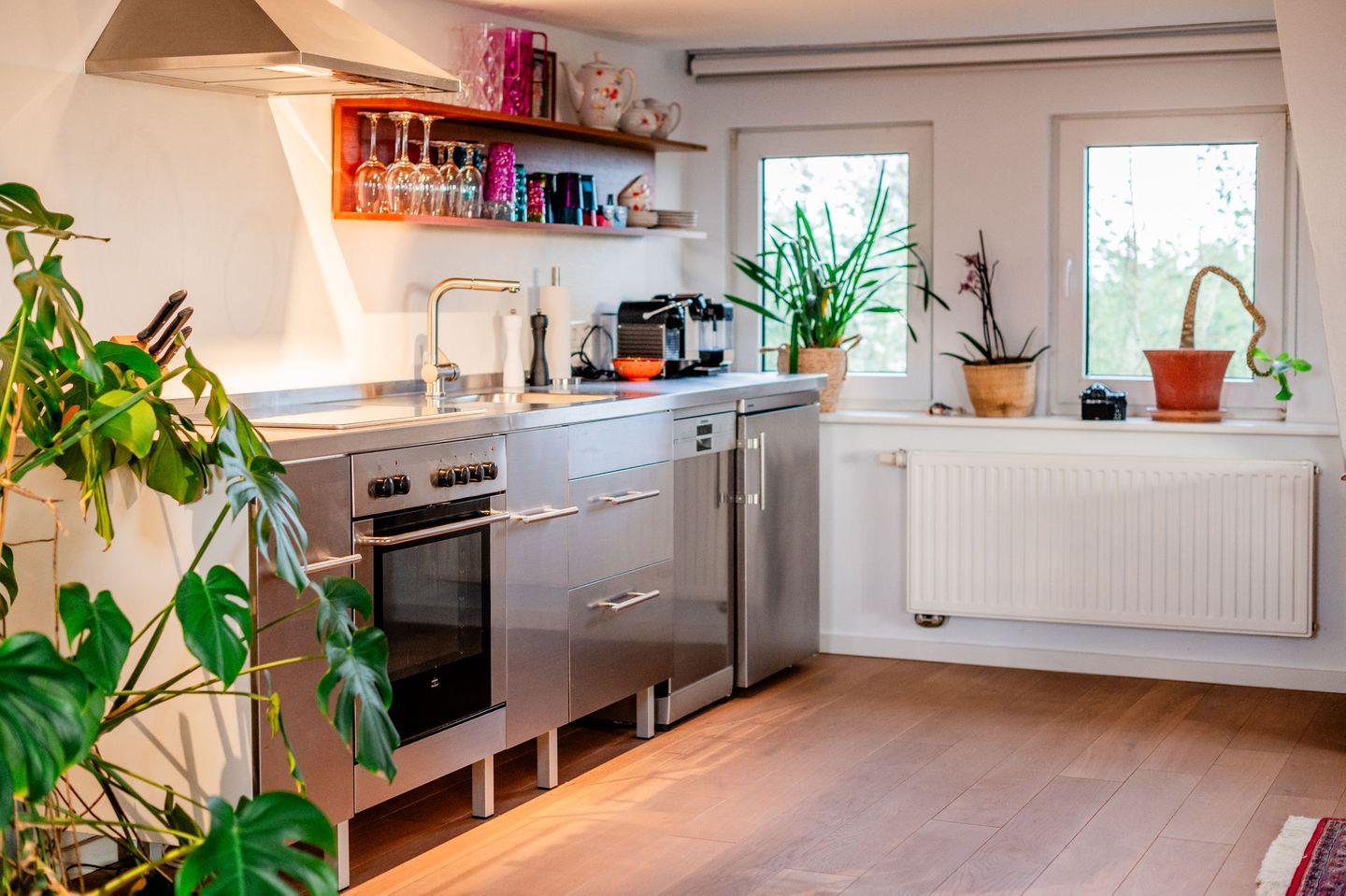 Die Küche im Erdgeschoß ist sehr komfortabel ausgestattet und lädt zum geselligen Familien kochen ein, hier findet ihr alles was ihr fürs Kochen benötigt. Für den Kaffeegenus am morgen sorgt der Kaffeevollautomaten von Jura.