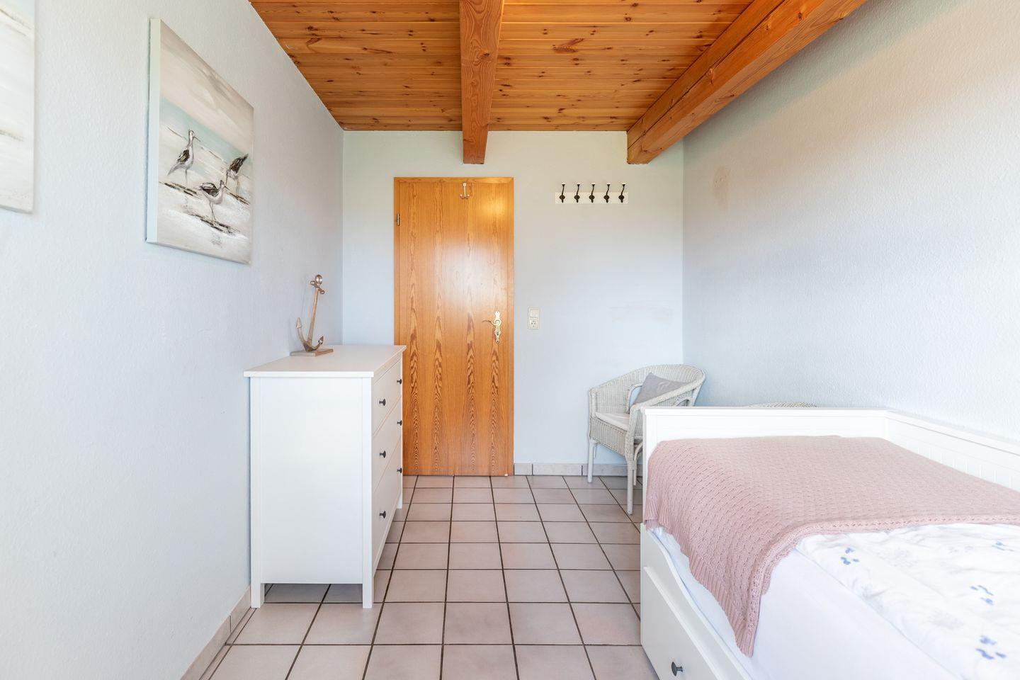 In dem zweiten Schlafzimmer der Unterkunft befindet sich ein ausziehbares Einzelbett, sodass hier bis zu zwei Personen Platz finden - ideal für Kinder! In diesem Schlafzimmer stellt eine Kommode weiteren Stauraum dar.