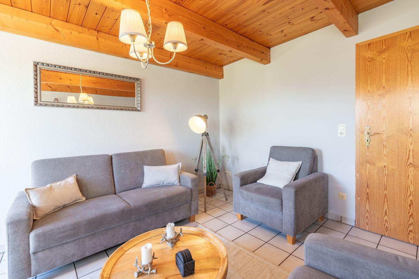 Die 48 Quadratmeter große Erdgeschosswohnung ist mit ihren drei Zimmern hervorragend für Familien geeignet! Der helle Wohnbereich mit Zugang zur Terrasse lädt zu geselligen Stunden ein. Ein Fernseher, Bücher, Spiele und ein Radio sorgen für Unterhaltungsmöglichkeiten.