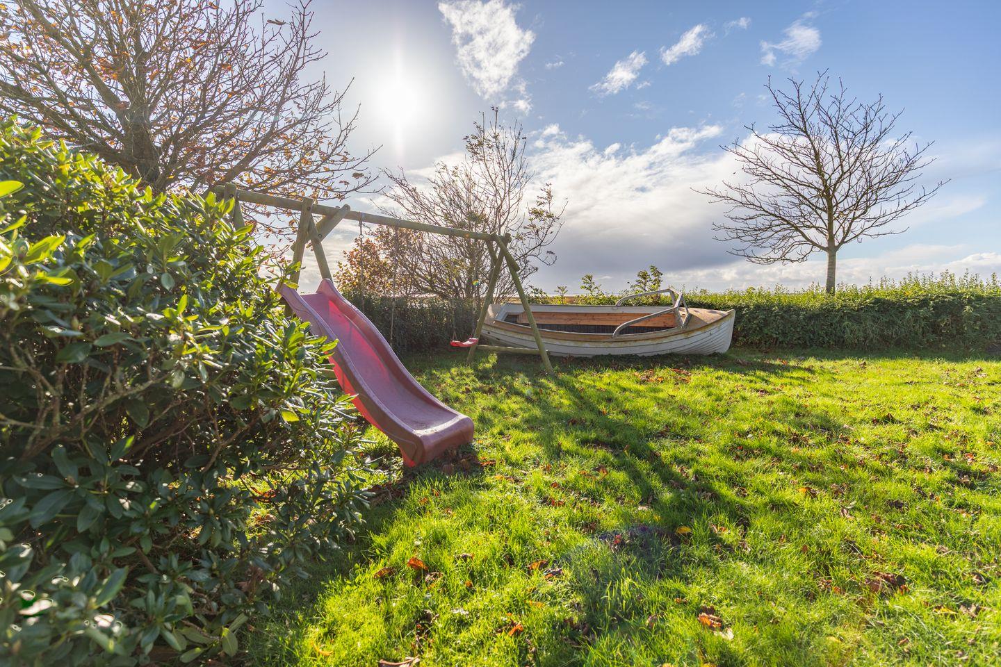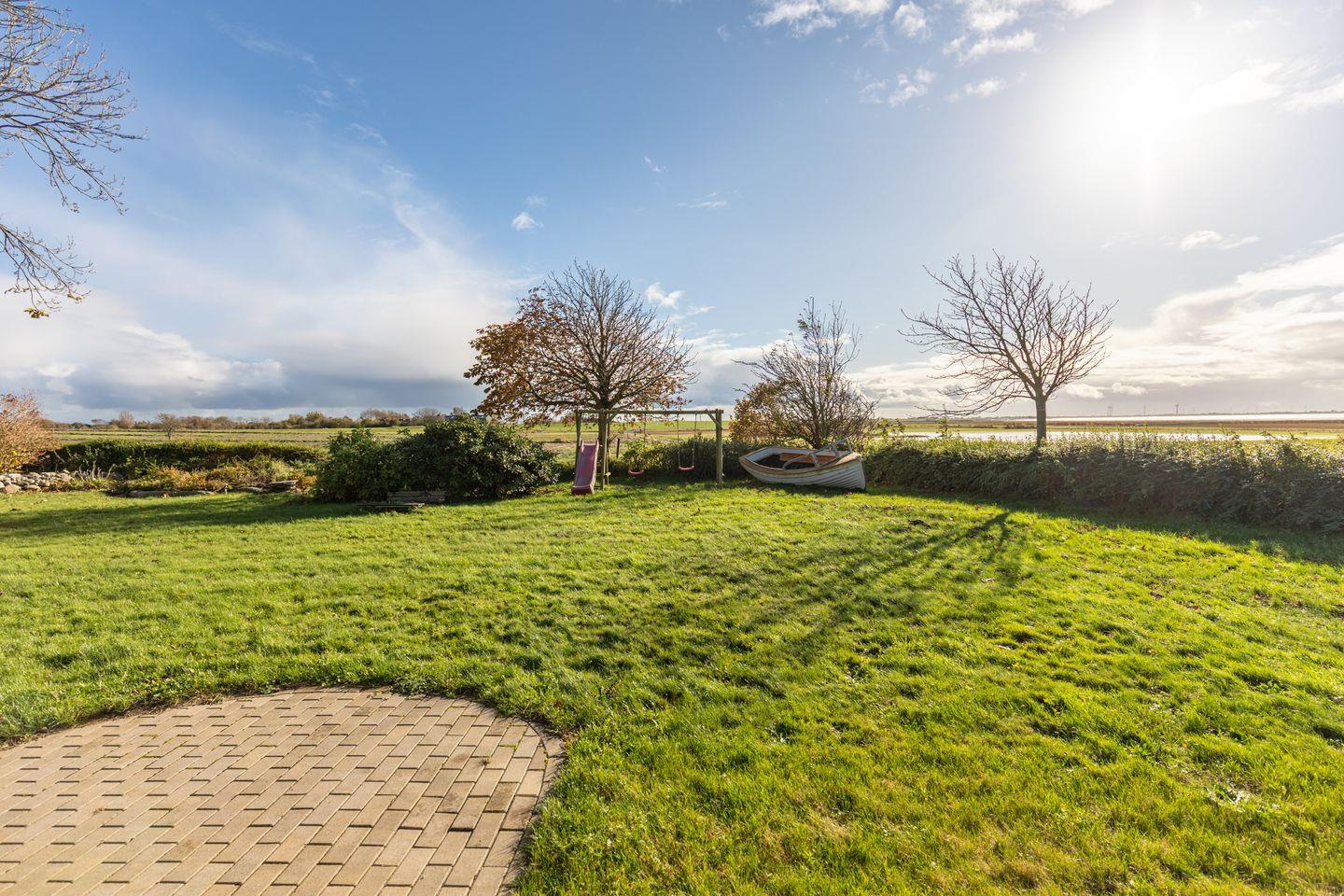 Genießen Sie im gemeinschaftlichen Garten den außergewöhnlichen Ausblick über die nordfriesische Landschaft mit direktem Blick auf die Nordsee!