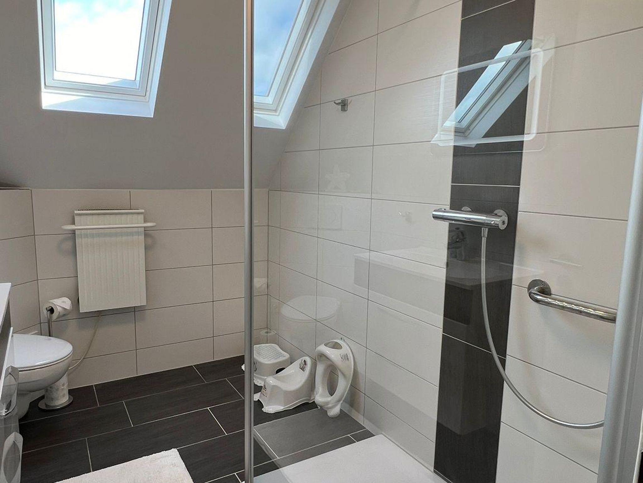 Im OG gibt es ein Badezimmer mit Dusche und drei Schlafzimmer.