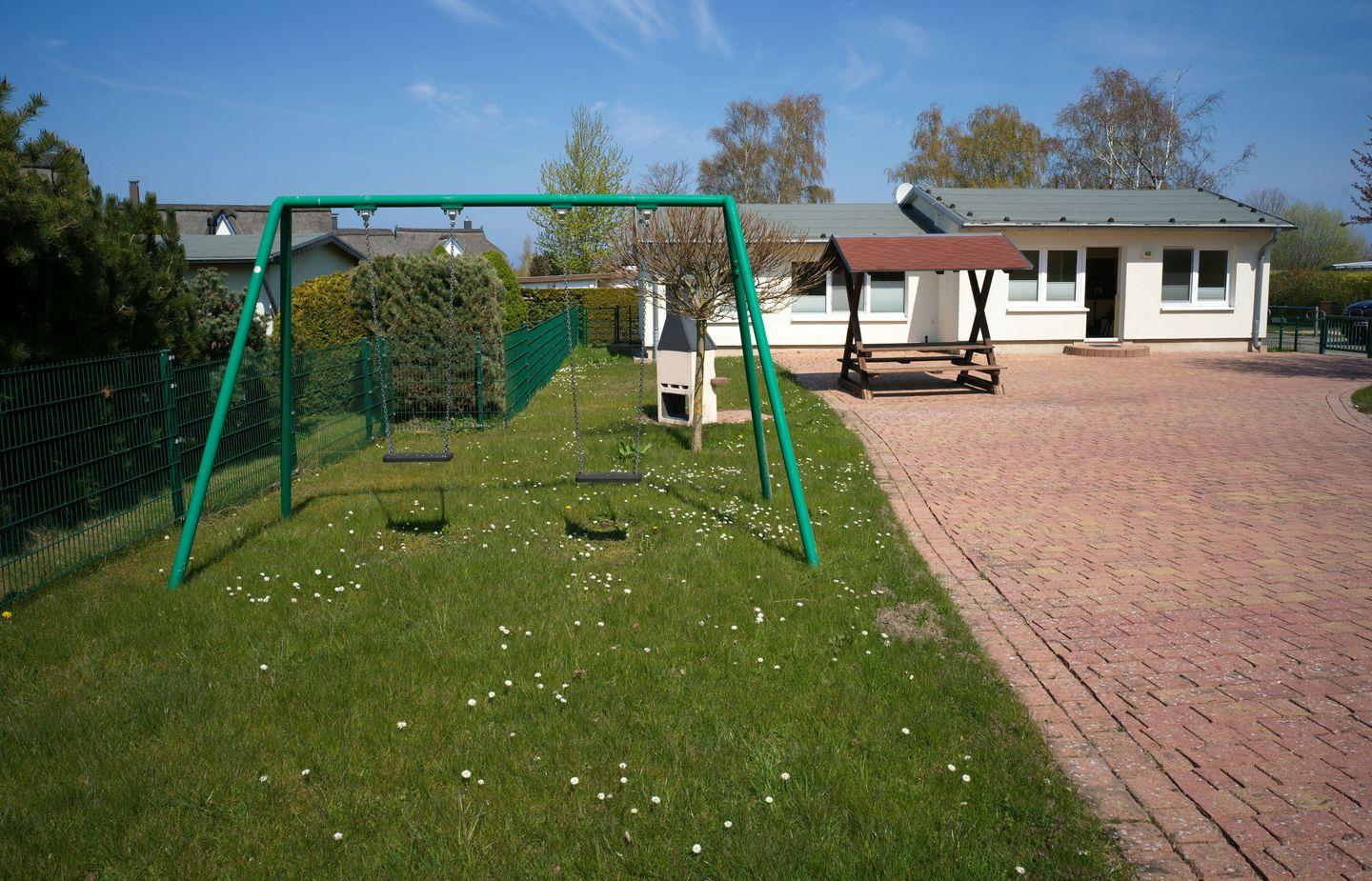 Das große, umzäunte Grundstück mit Gartenmöbeln, Sandkasten, Schaukel, Grill und Blick ins Grüne lädt Sie ein, zu lesen, grillen oder toben.
