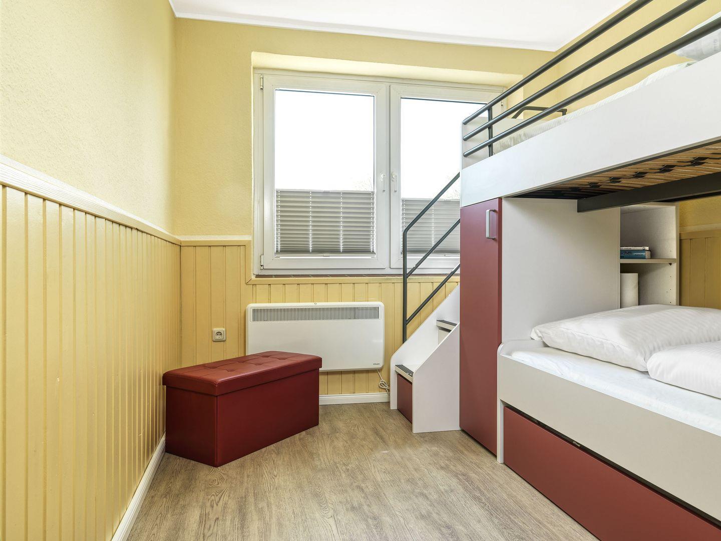 Das große Schlafzimmer verfügt über ein Doppelbett (1,60mx2,00m) und einen Kleiderschrank. Im kleinen Schlafzimmer erwartet Sie ein Etagenbett (90x200). Ein Schlafzimmer ist ein Durchgangzimmer.