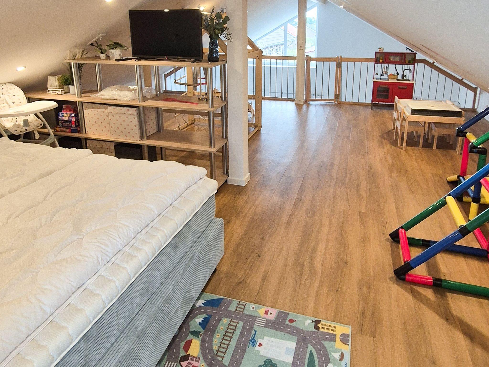 Das Haus ist von A-Z kinderfreundlich ausgestattet. Es gibt eine eigene riesige Spielebene, wo die Kinder am liebsten den ganzen Tag verbringen möchten. Somit ist auch bei regnerischen Tagen der Urlaub gerettet, die Kinder werden es lieben.