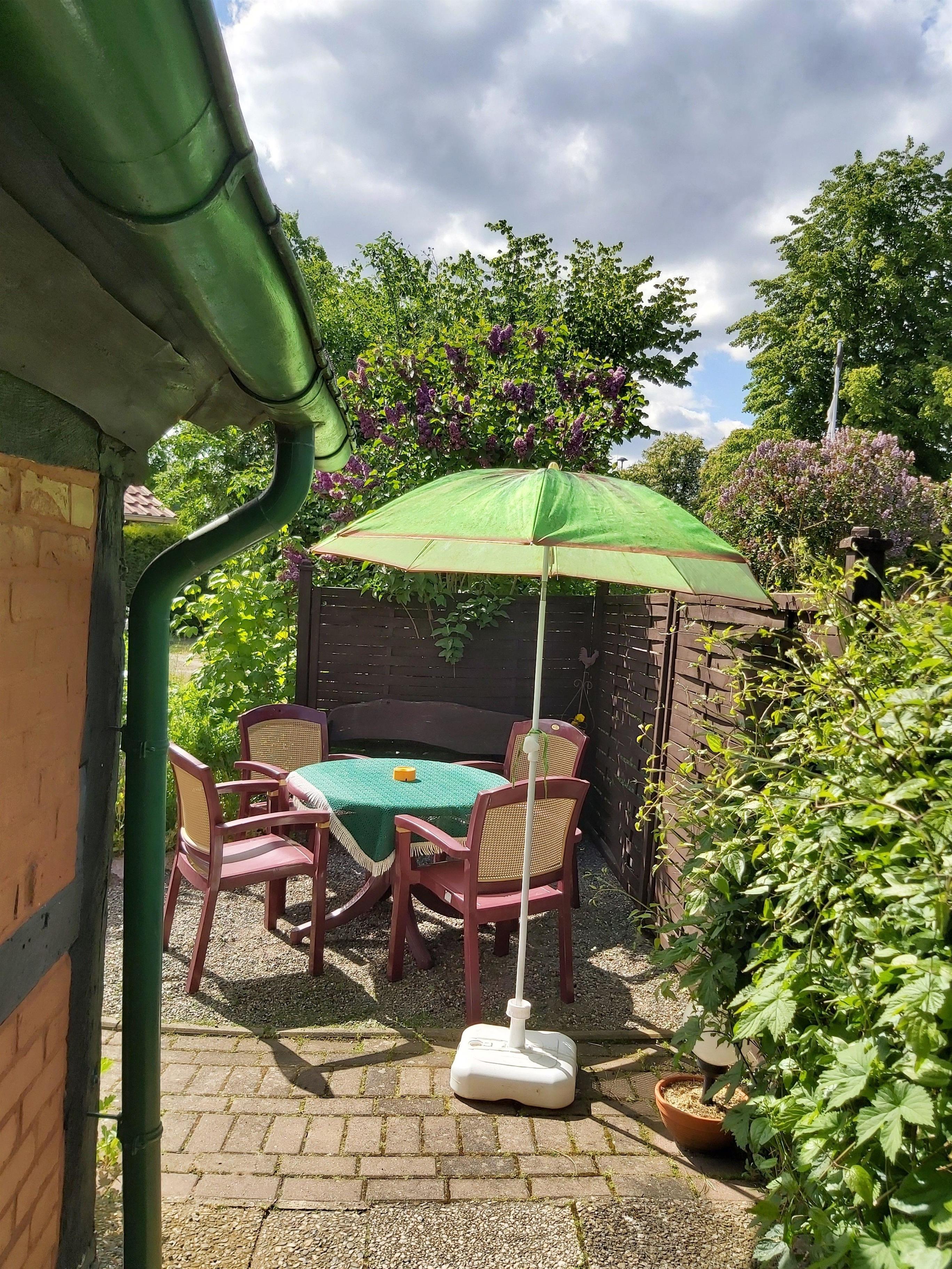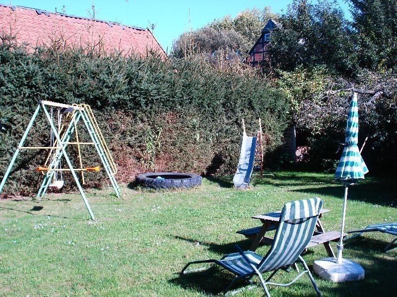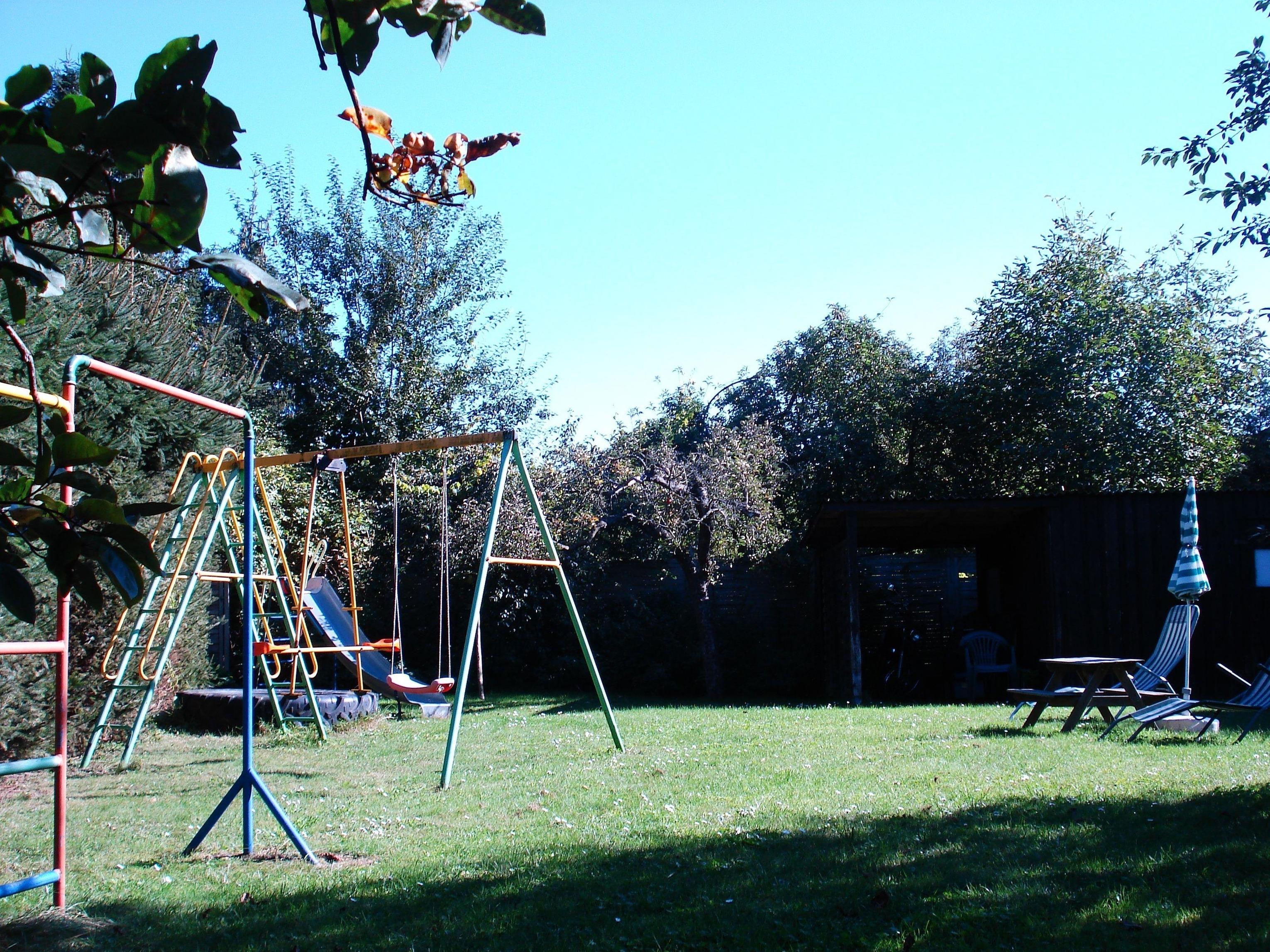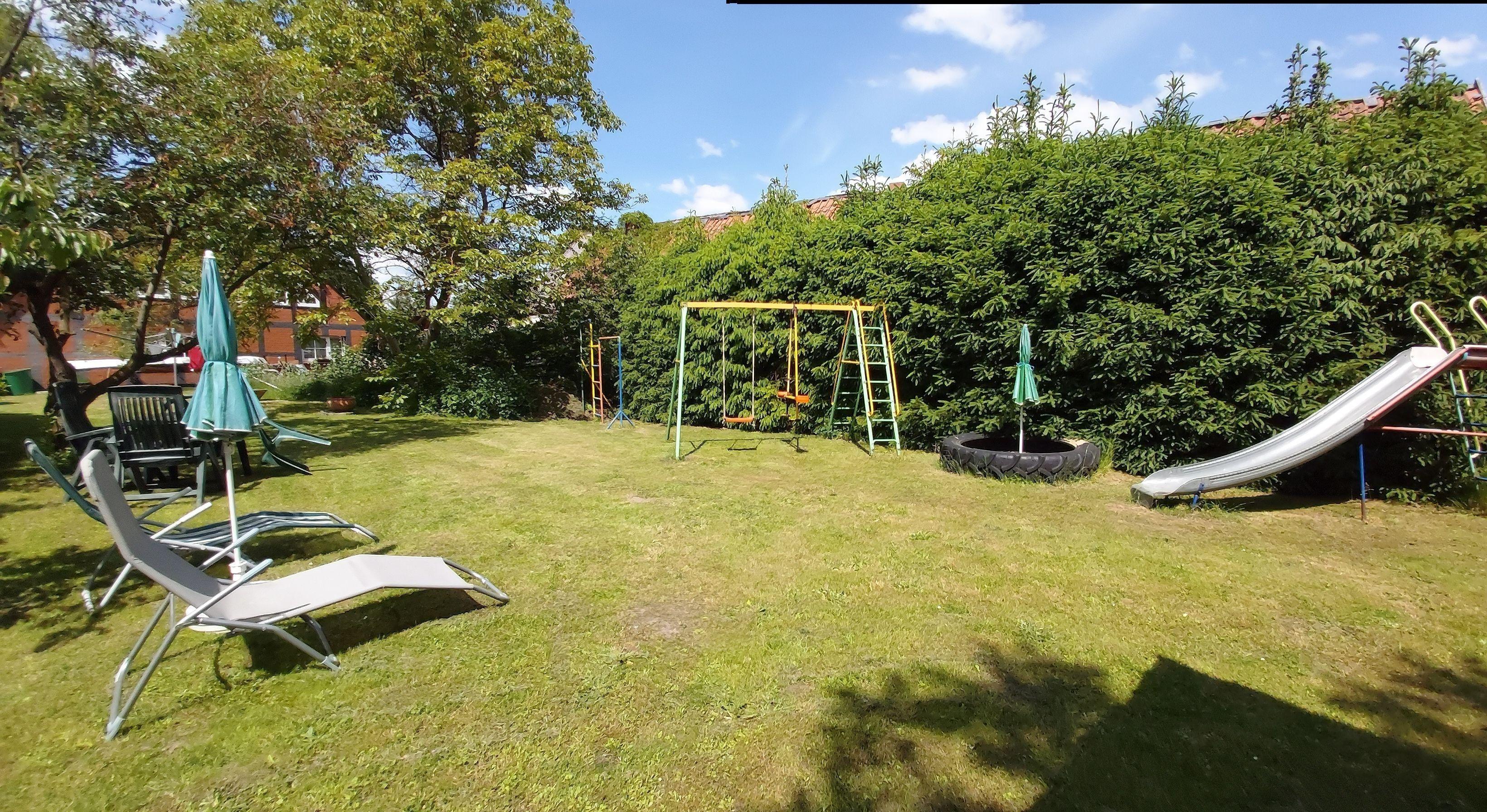 Im Aussenbereich wartet eine gemütliche Sitzecke mit Gartenmöbeln zum entspannen, relaxen, entschleunigen und klönnen auf sie. Für Ihre Kleinen steht ein eigener Kinderspielplatz, sowie auf dem unmittelbar, angrenzenden Dorfplatz, ein Bolzplatz zur Verfügung. Für Sonnenhungrige besteht die Möglichkeit im Garten sich per Liegestühle so richtig zu entspannen.