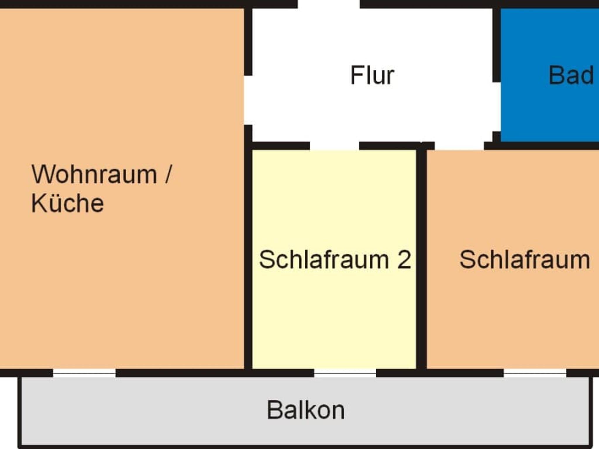 ca. 60 qm, Schlafraum mit Doppelbett und ein Schlafraum mit getrennten Betten. Der Wohn-, Koch und Essbereich ist im seperaten Raum.