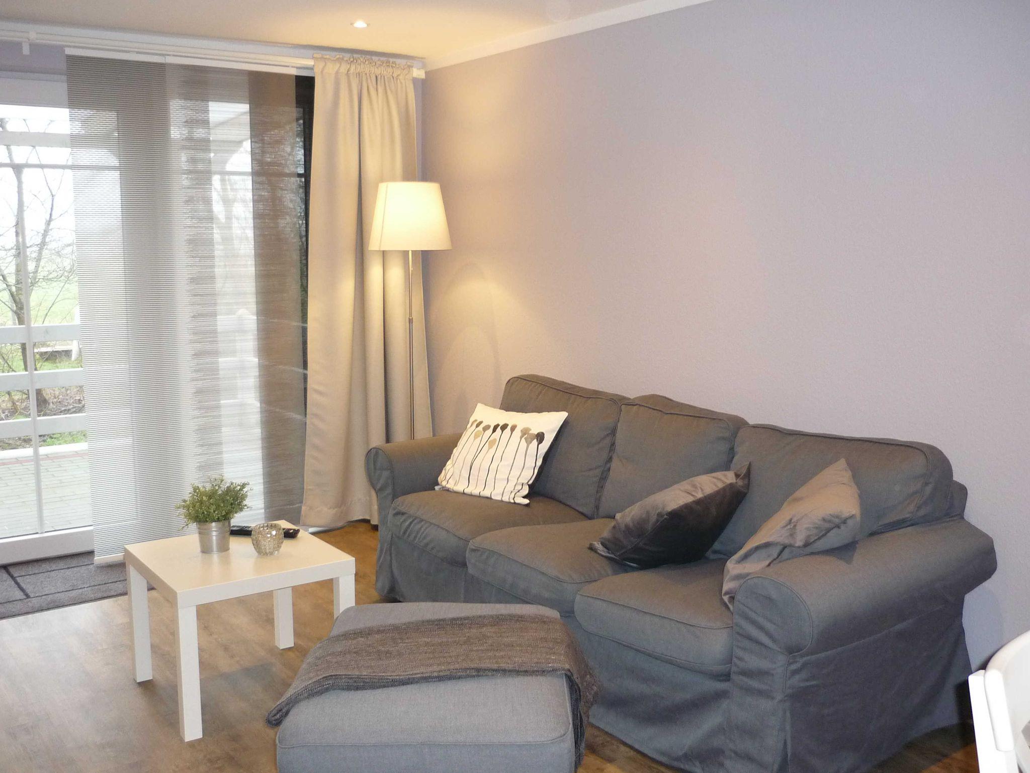 Ein Sofa im Wohnraum lässt sich auf ein oder zwei weitere Schlafplätze umbauen, so dass insgesamt sechs Personen übernachten können. In einem Doppelzimmer lässt sich bequem ein Kinderreisebett aufstellen.
