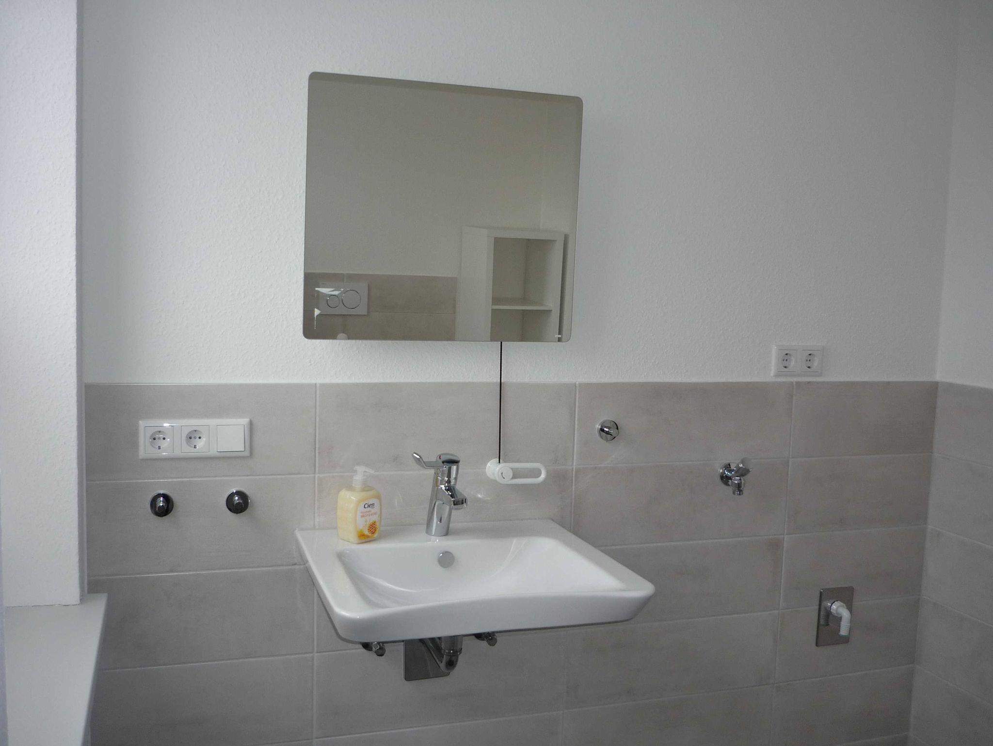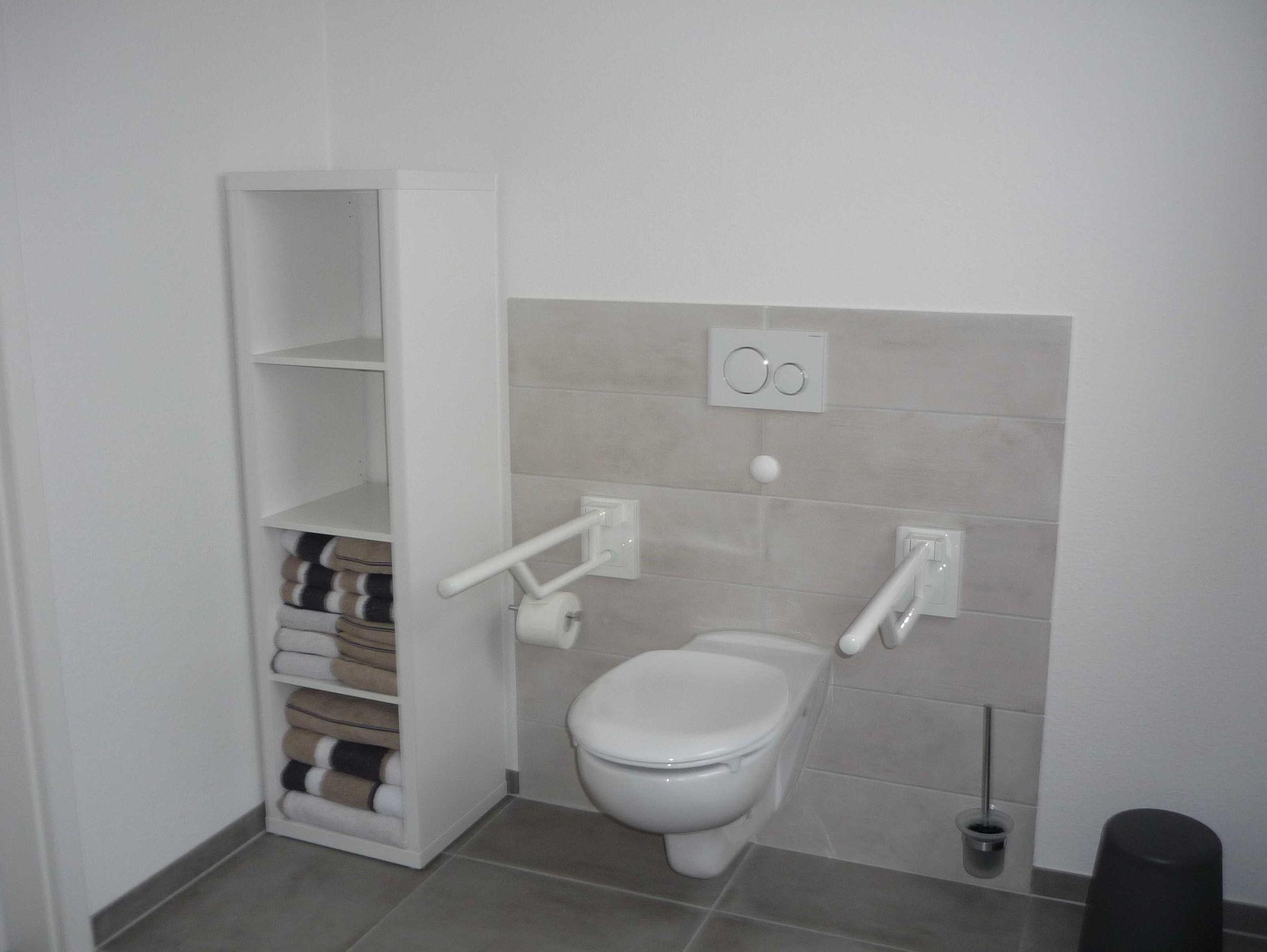 Ein Bad verfügt über eine Badewanne und eine große, ebenerdige Dusche, ein Waschbecken sowei ein WC. Das zweite Bad ist mit einem behindertenfreundlichen WC und Waschbecken ausgestattet, hier steht Ihnen auch eine Waschmaschine zur Verfügung.