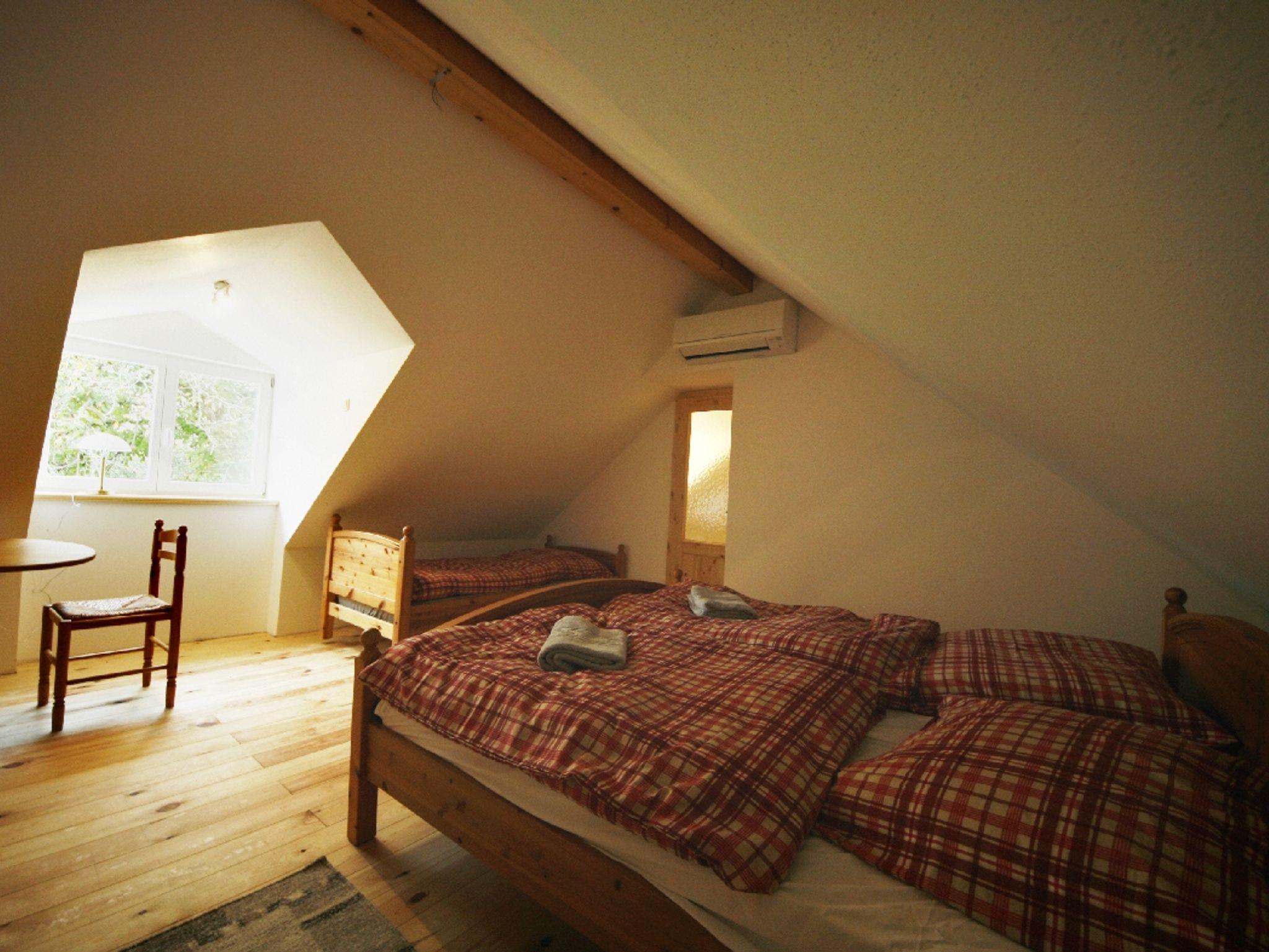 1. Etage, Lage mit Blick ins Grüne und auf den alten Pfarrhof, Holzdielung und Vollholzmöbel, Betten 2x2 bzw. 2x2,20 Meter, Aufbettung möglich, sehr liebevoll eingerichtet, Klimaanlage, Nichtraucherzimmer