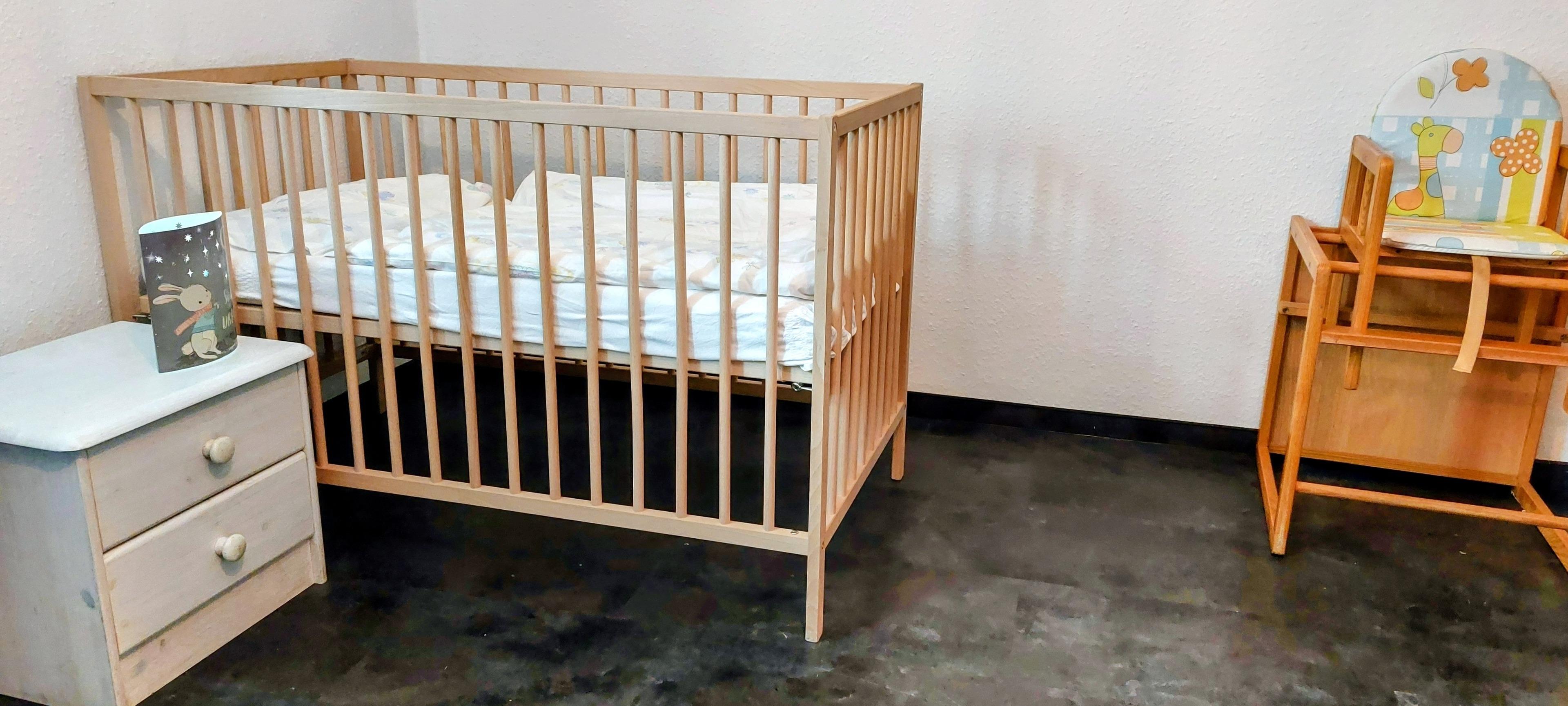 Für unsere kleinen Gäste: Wickelkommode mit Auflage, ein Kleinkinderbett sowie 2 Kinderfahrräder (1 mit Stützrädern) sind ebenfalls vorhanden.