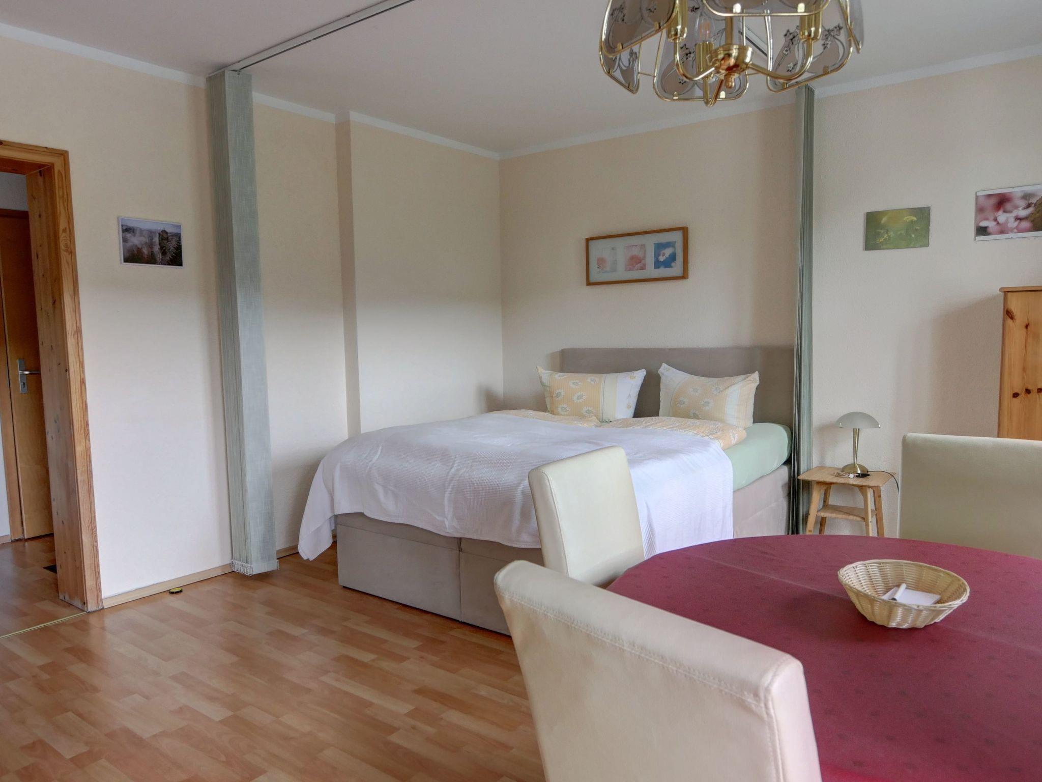 This smartly designed studio holiday flat makes the most of the available space and creates a welcoming atmosphere without the need for a separate bedroom. The windows are designed so that they can be completely darkened if required, ensuring privacy and a restful night's sleep. A shared washing machine and tumble dryer are also available in the building to make your stay as comfortable as possible. In addition, the kitchen equipment with ceramic hob, coffee machine, dishwasher and kettle offers everything guests need for self-catering.