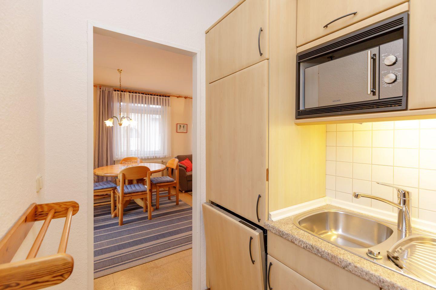 Die offene Pantryküche ist modern ausgestattet – Geschirrspüler, Backofen und Mikrowelle machen die Selbstverpflegung zum Kinderspiel. Das moderne Duschbad sorgt für Frische und Komfort. Zur technischen Ausstattung gehören ein Flachbild-TV und WLAN.