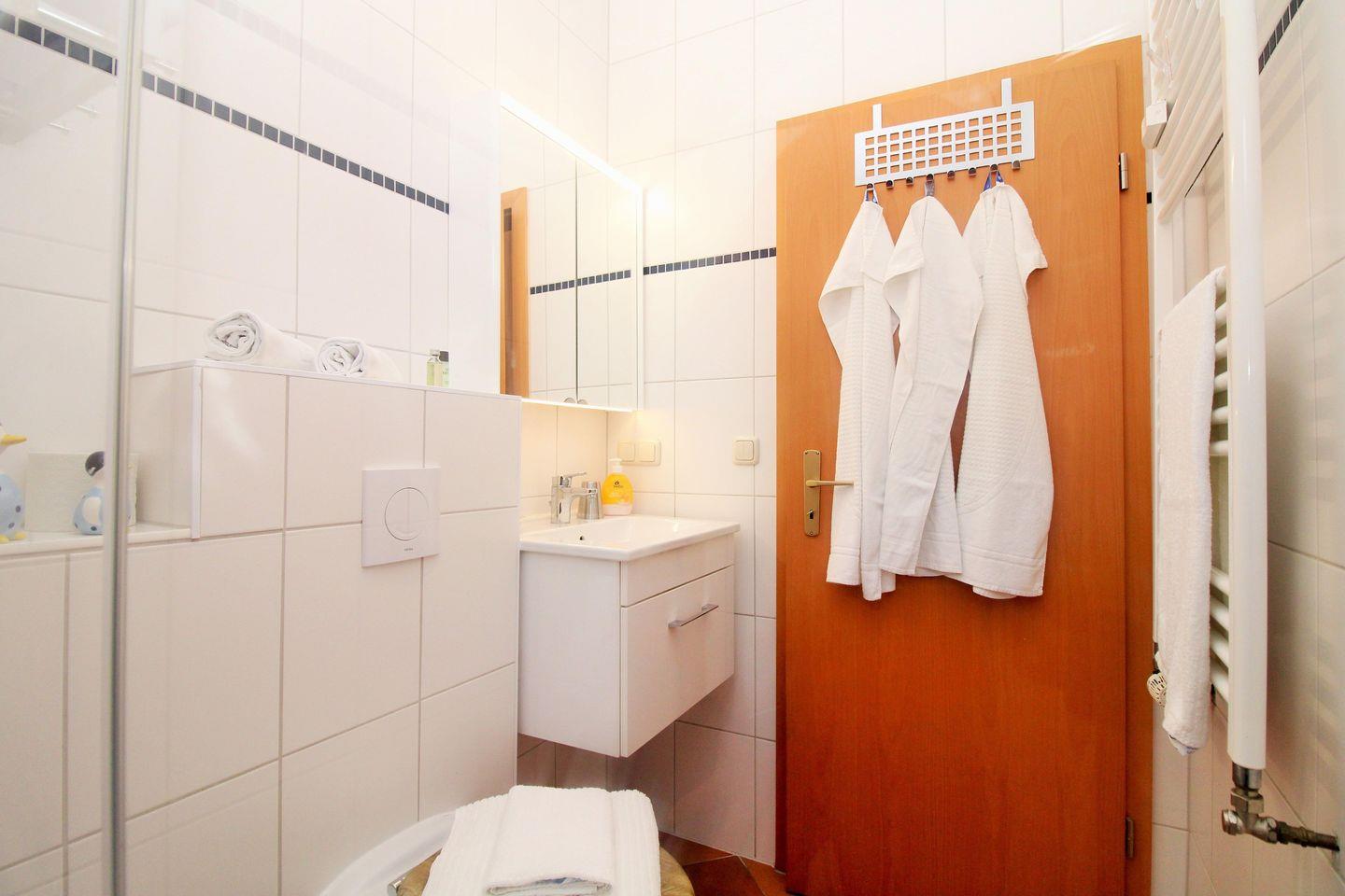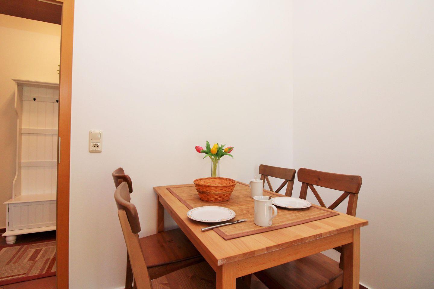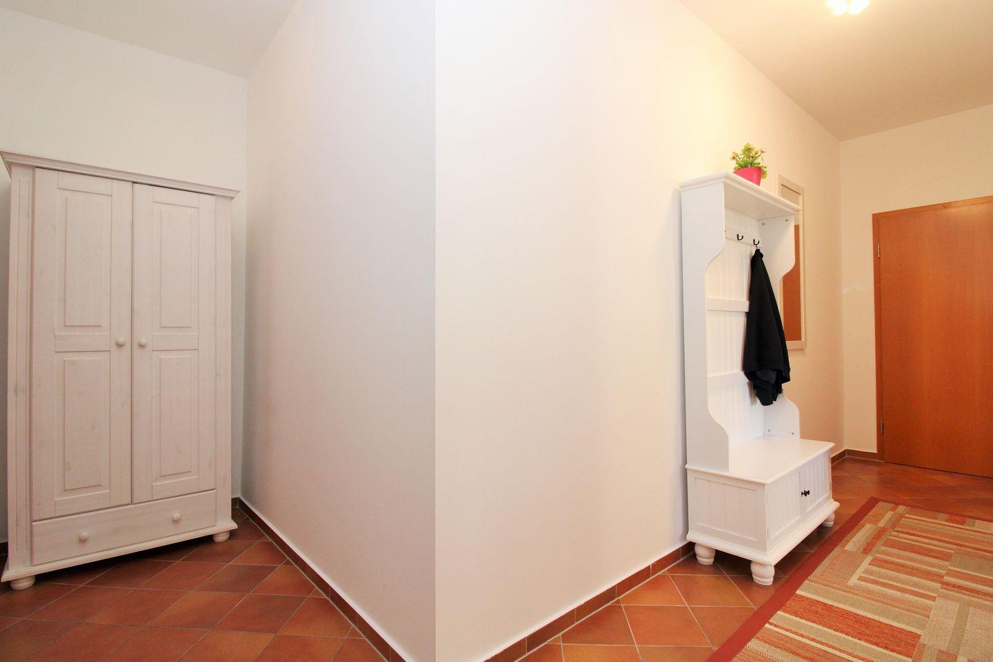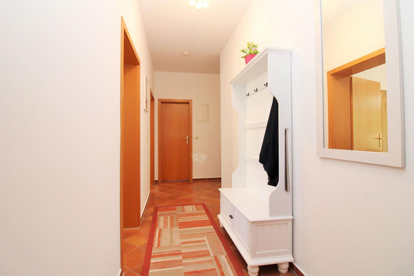 Vom geräumigen Flur mit Spiegel, Garderobe und Schränken erreichen Sie bequem alle Räume Ihrer Ferienwohnung.