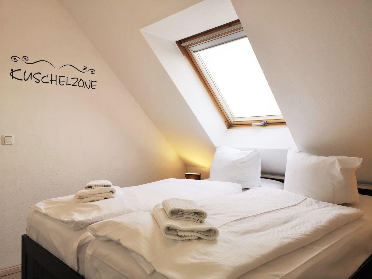 Die Ferienwohnung bietet Schlafmöglichkeiten für insgesamt 4 Personen. Für Kleinkinder stellen wir Ihnen bei Bedarf zusätzlich auch gerne kostenfrei ein Kinderreisebett (ohne Matratze, Bettdecke, Kissen und Bezüge) sowie einen Kinderhochstuhl zur Verfügung.