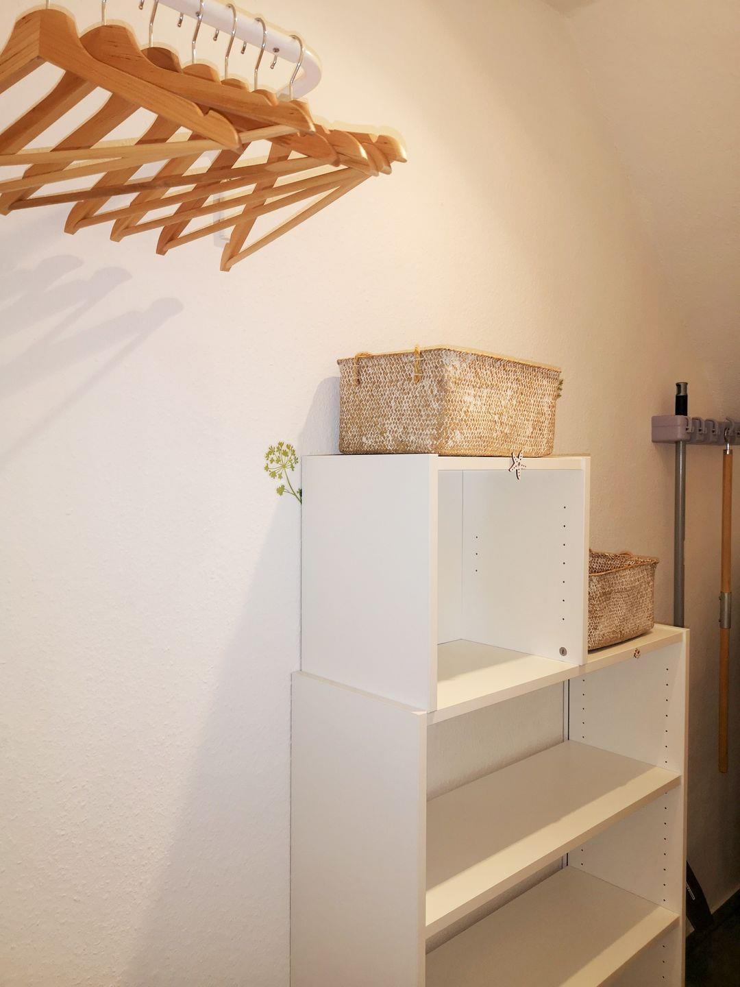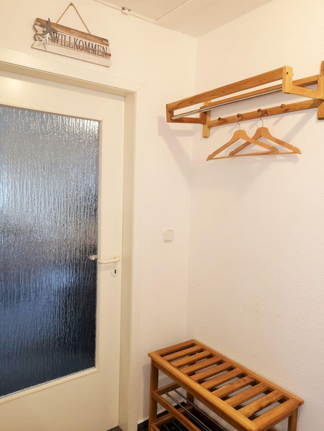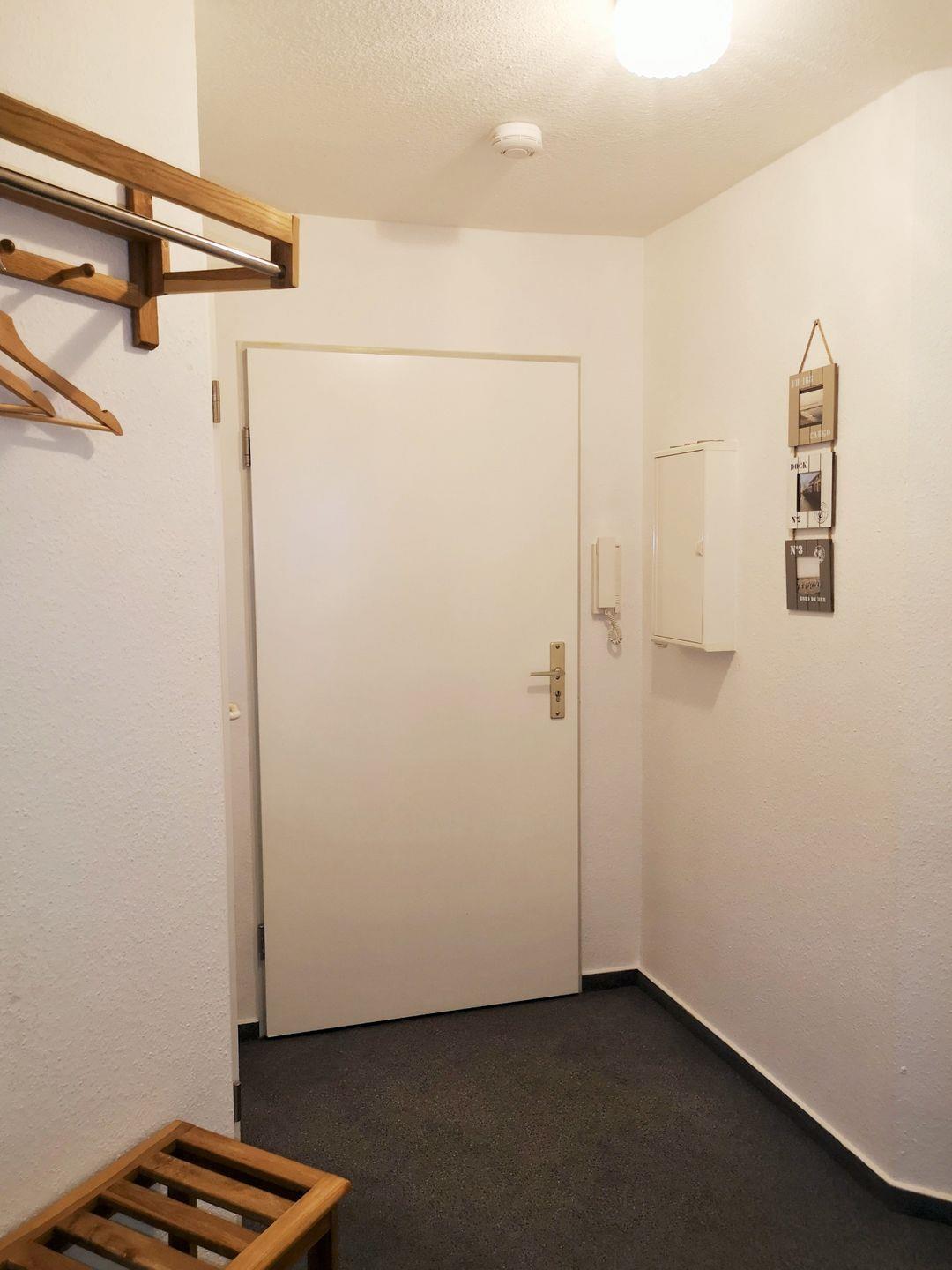 Ihre Schuhe und Jacken können Sie an der Garderobe (mit Spiegel) und dem Schuhboard im Flur der Wohnung unterbringen.
