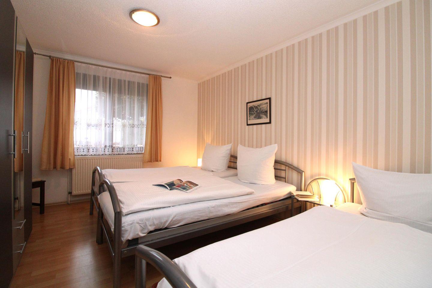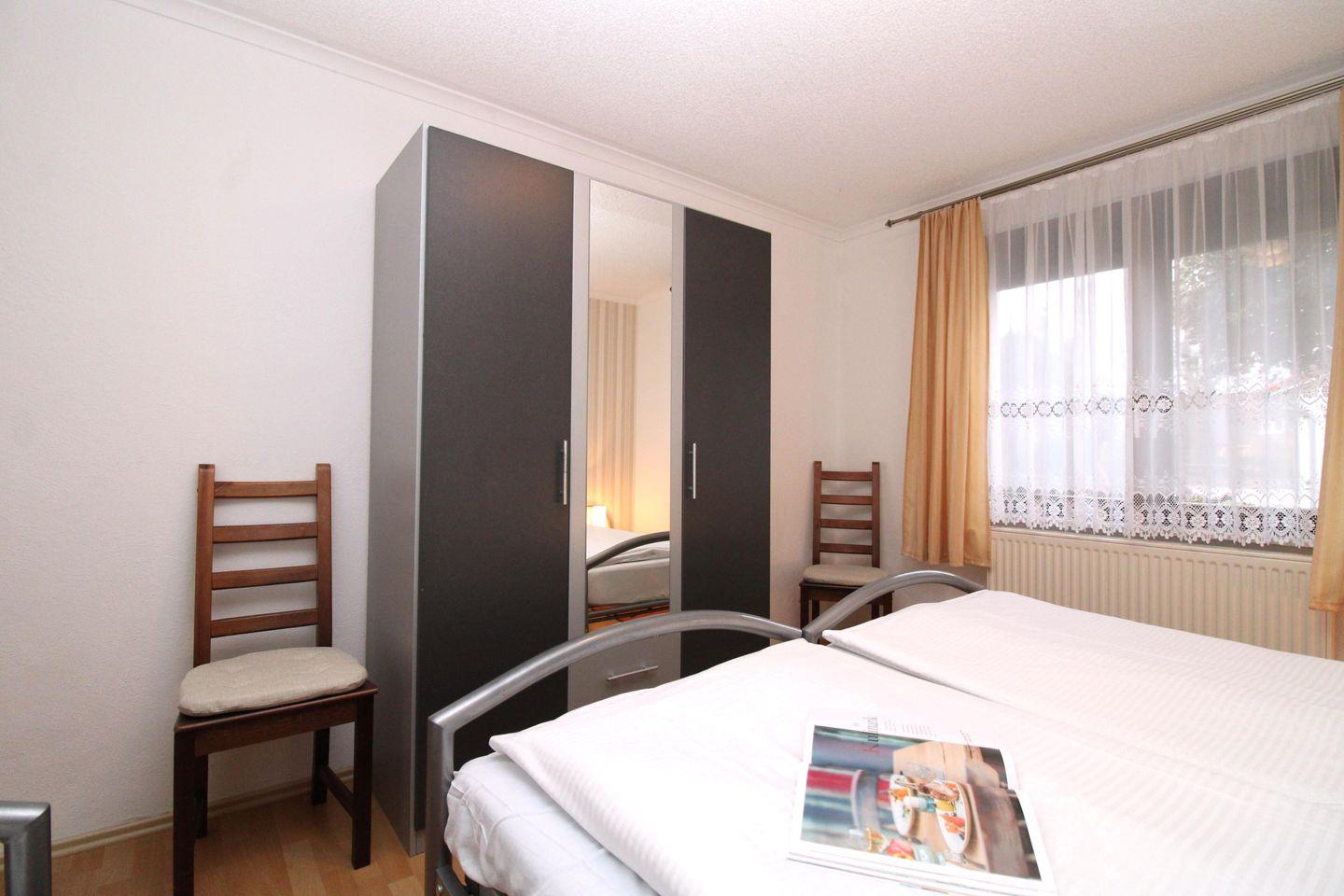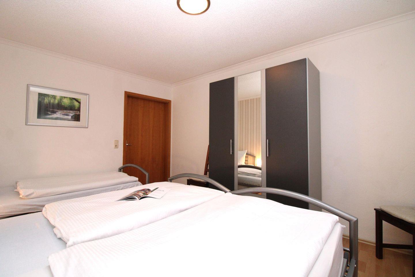 Das separate 2. Schlafzimmer verfügt über ein bequemes Doppelbett (2x90x200), ein Einzelbett (90x200), Nachttische, einen geräumigen Kleiderschrank sowie zwei Stühle.
